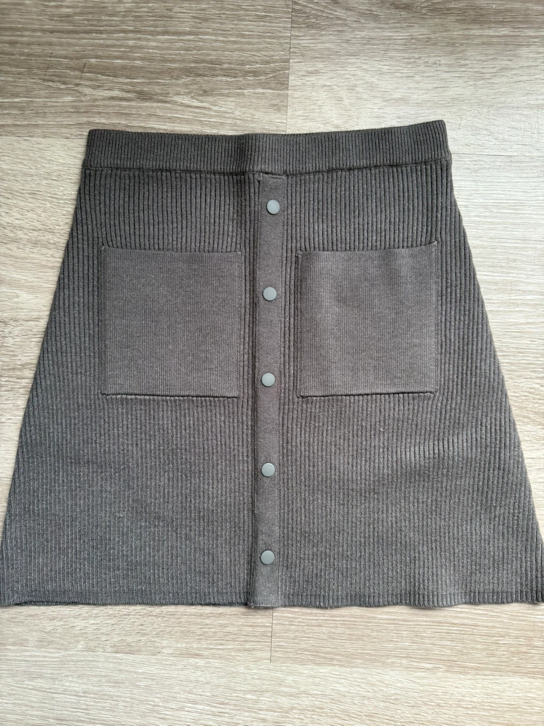 Selling a cute Zara knit mini skirt in size small. It's a stylish piece that's perfect for any wardrobe. The skirt features a button-down front and two front pockets. The material is comfortable and has a nice texture. Great for casual outings or dressing up!