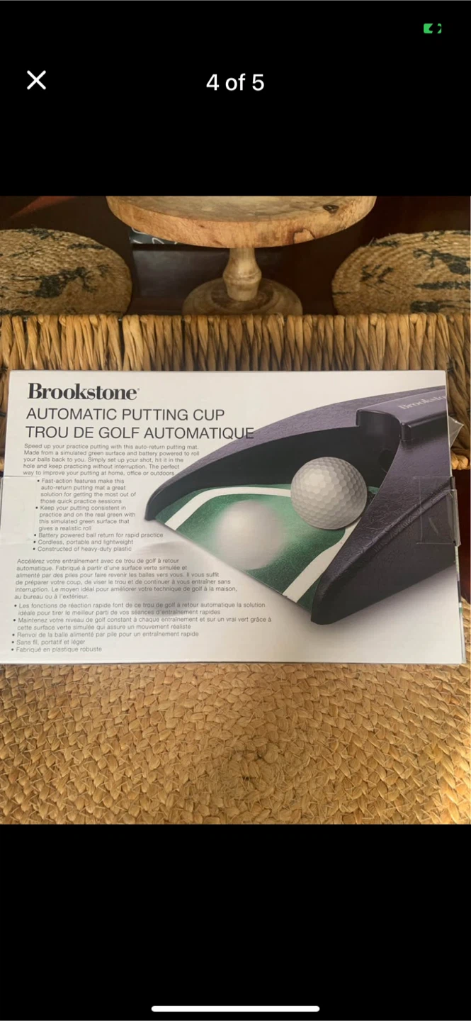 Get your golf game in shape with this Brookstone Automatic Putting Cup! It helps speed up your practice with the auto-return putting mat.