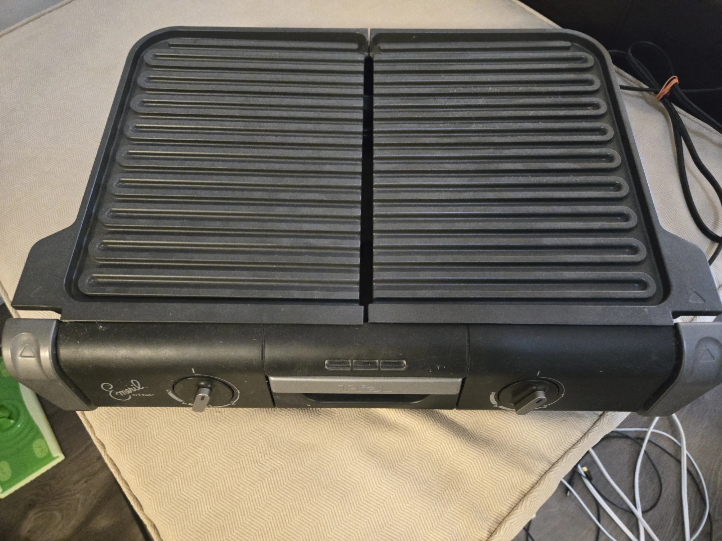 Offering a used Tefal Emeril indoor grill, perfect for indoor grilling with its non-stick surface and adjustable temperature settings. This model heats up quickly and is easy to clean, making it a convenient addition to any kitchen. Used less than 4 times. In excellent condition.