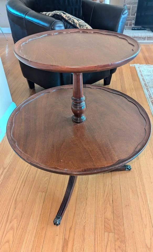Antique Brandt Mahogany 2-Tier side table/ dumb waiter