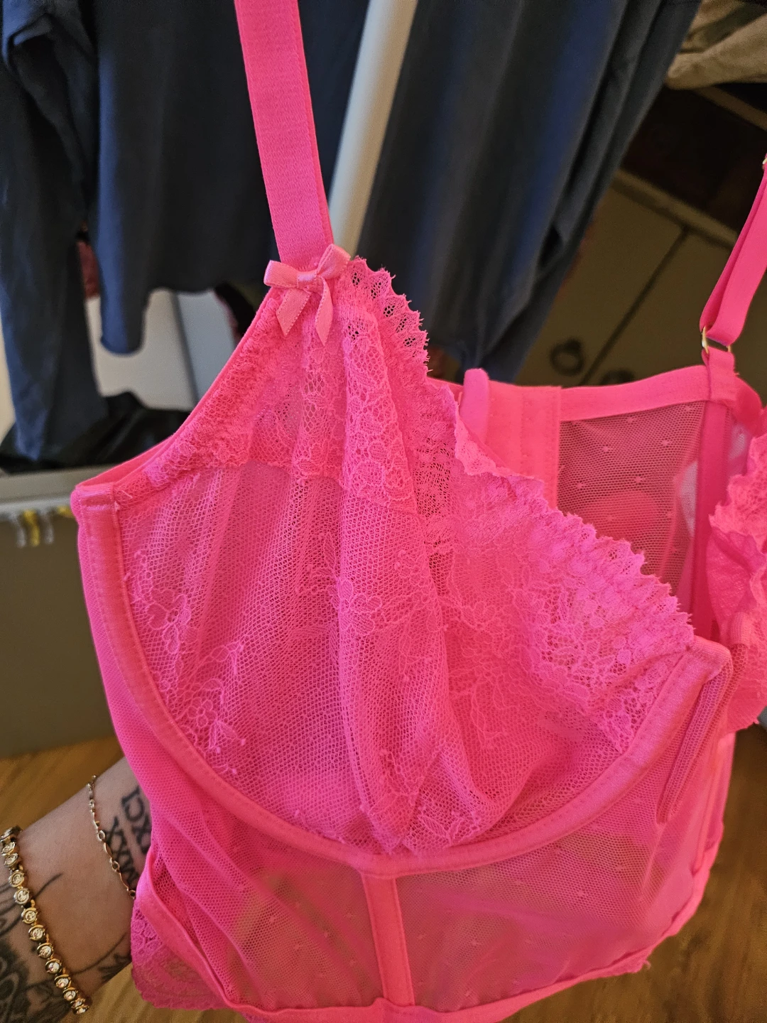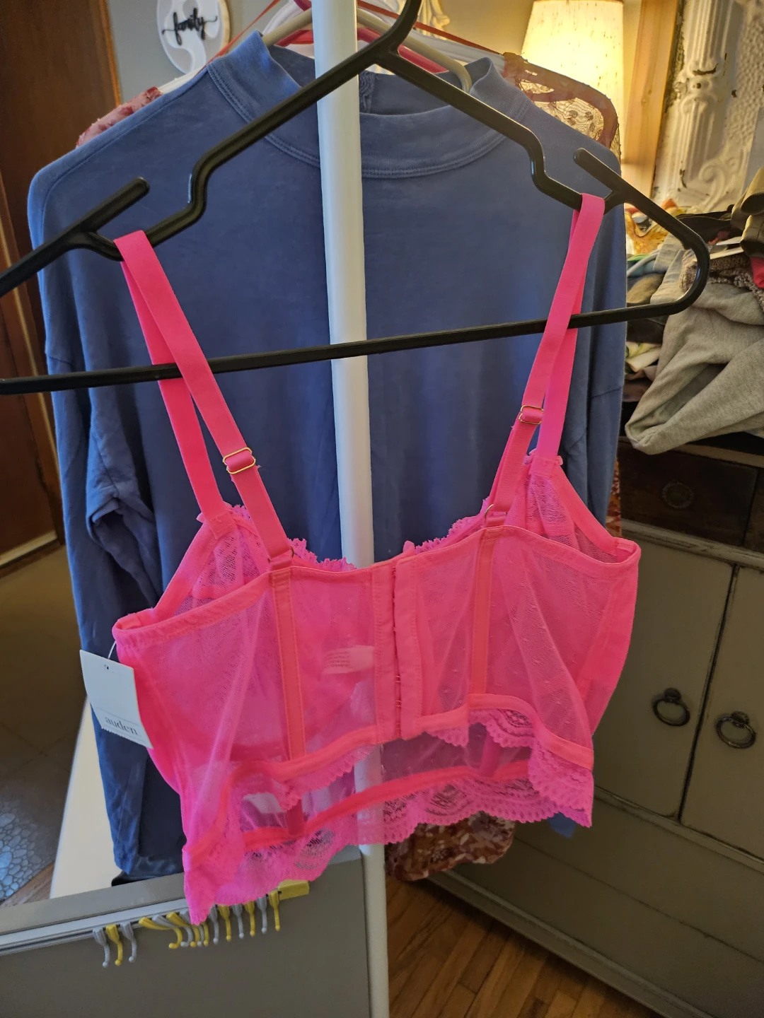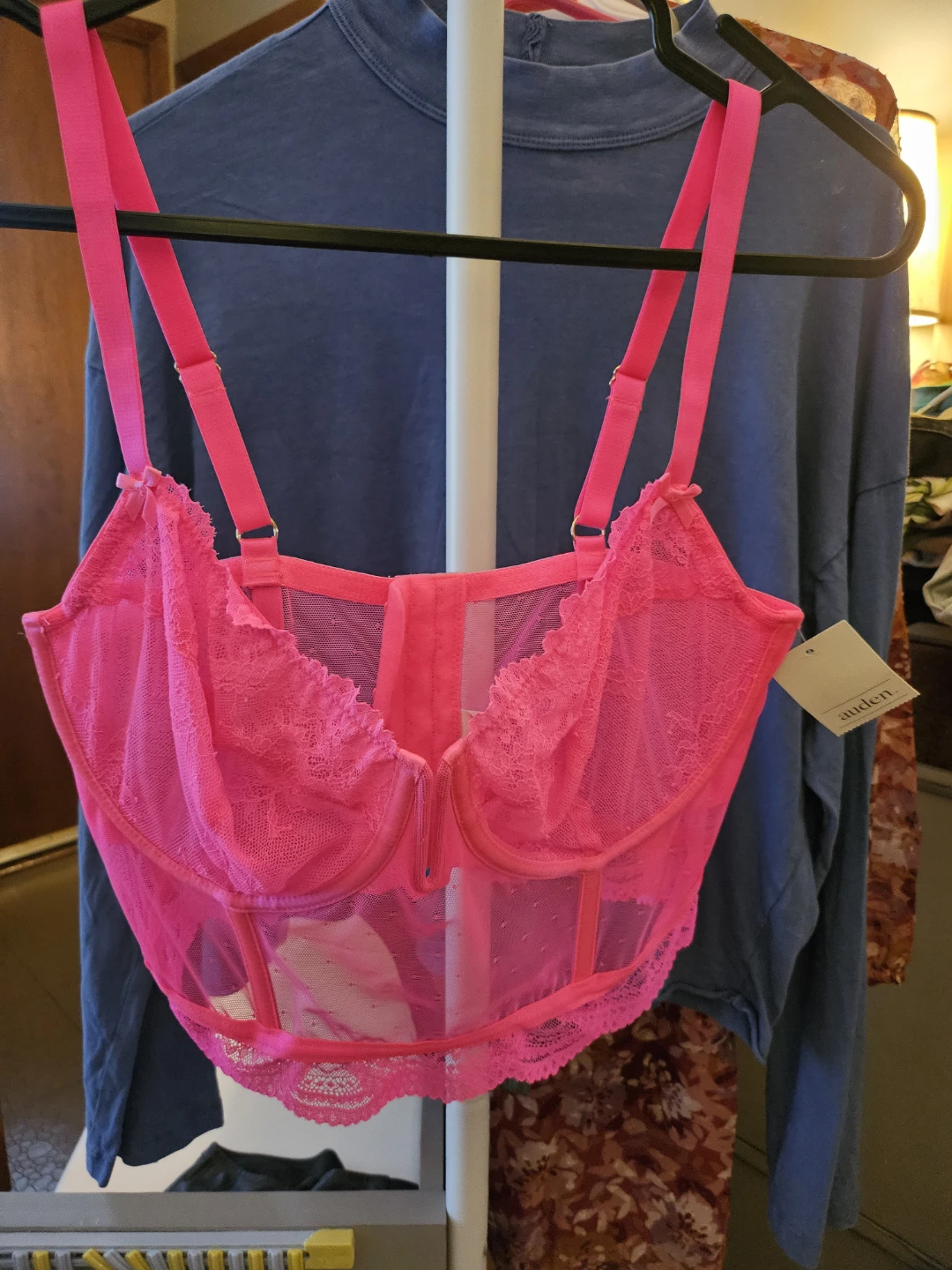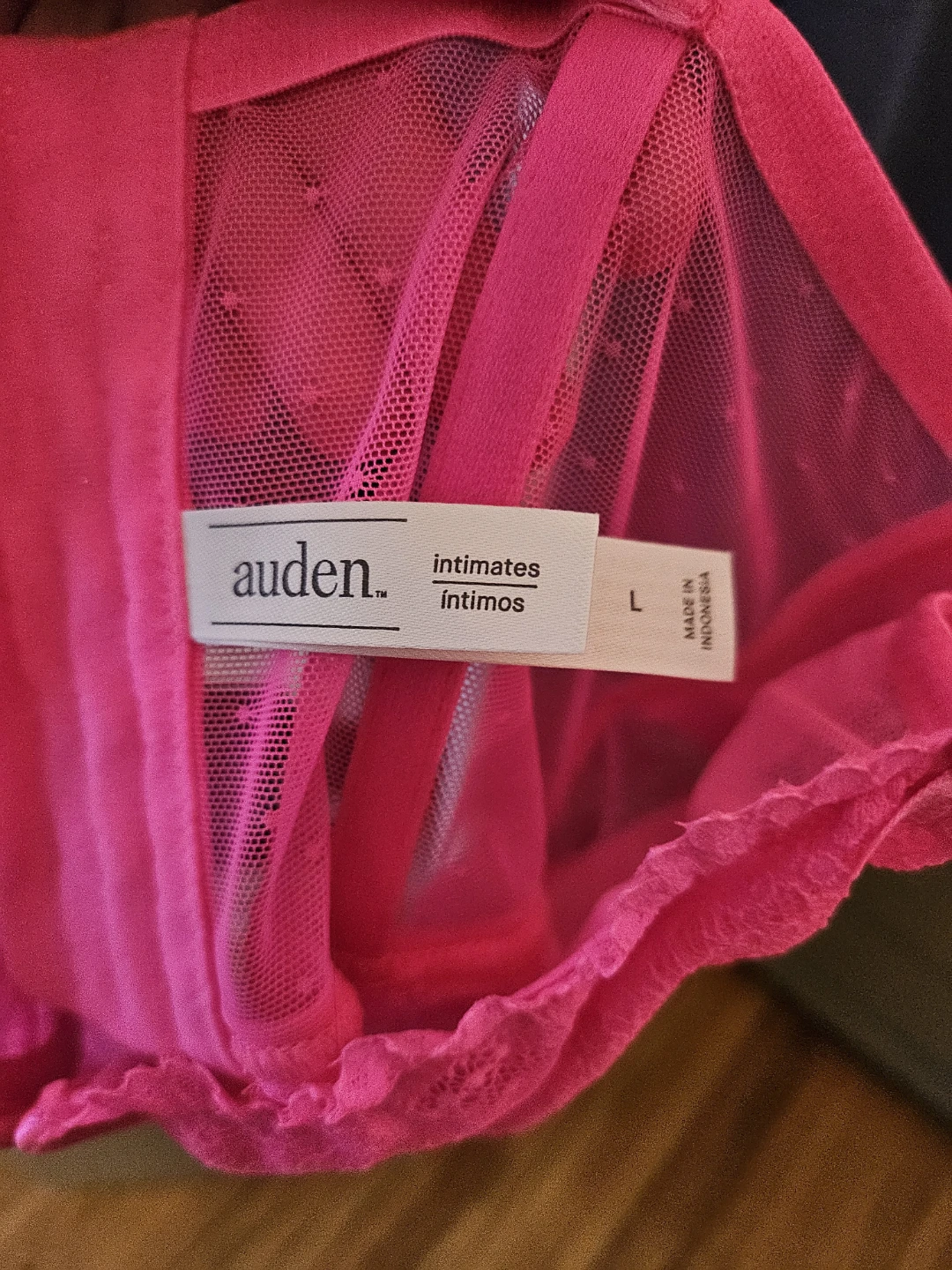 Selling a cute Auden Intimates lingerie top in a vibrant pink colour. It's a size L and features a delicate lace trim. Perfect for adding a pop of colour to your wardrobe!