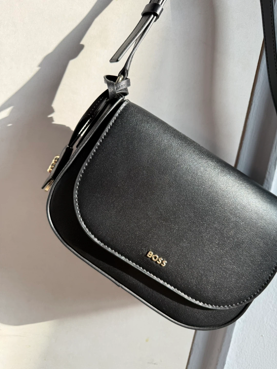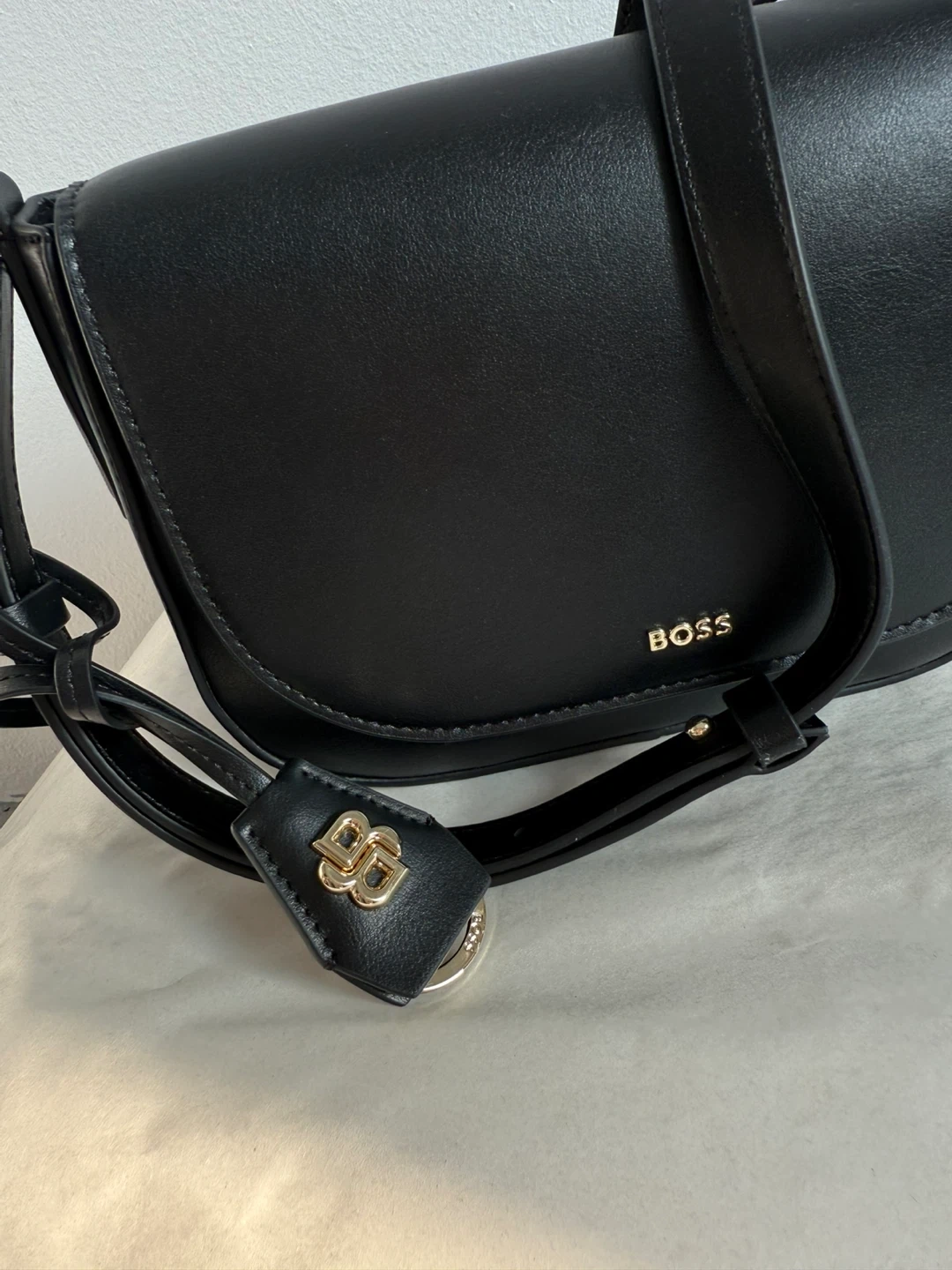 Selling a Hugo Boss black leather shoulder bag. It's in great condition and ready for a new owner! This stylish bag is perfect for everyday use. The sleek black leather gives it a classic and sophisticated look.