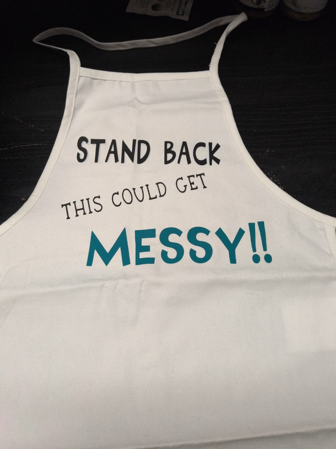 I have a few aprons for sale individually. One says "Stand Back This Could Get Messy!!", another says "Mommy's Little Helper" and the last one says "Daddy's Little Helper". They're perfect for baking or crafting with the kids