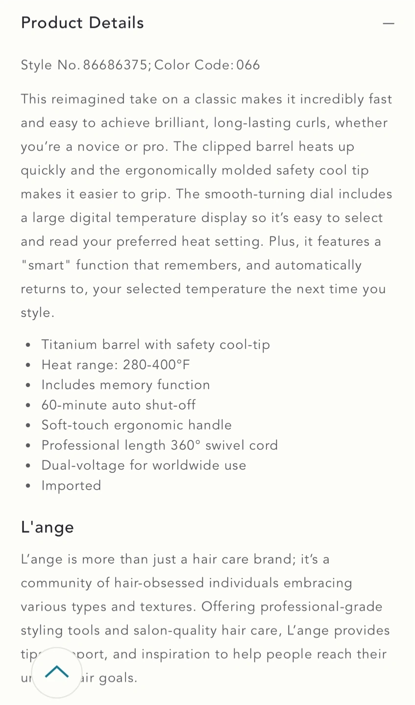 Selling the L'ange Le Clip 1.25" titanium curling iron which is no longer available online.