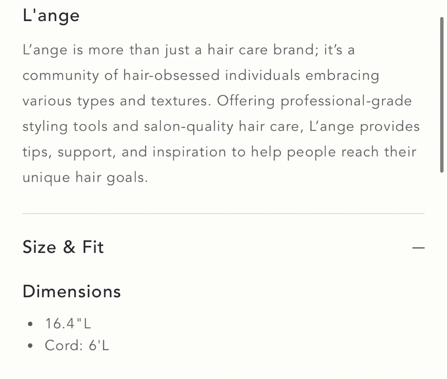 - Cord: 6 in L