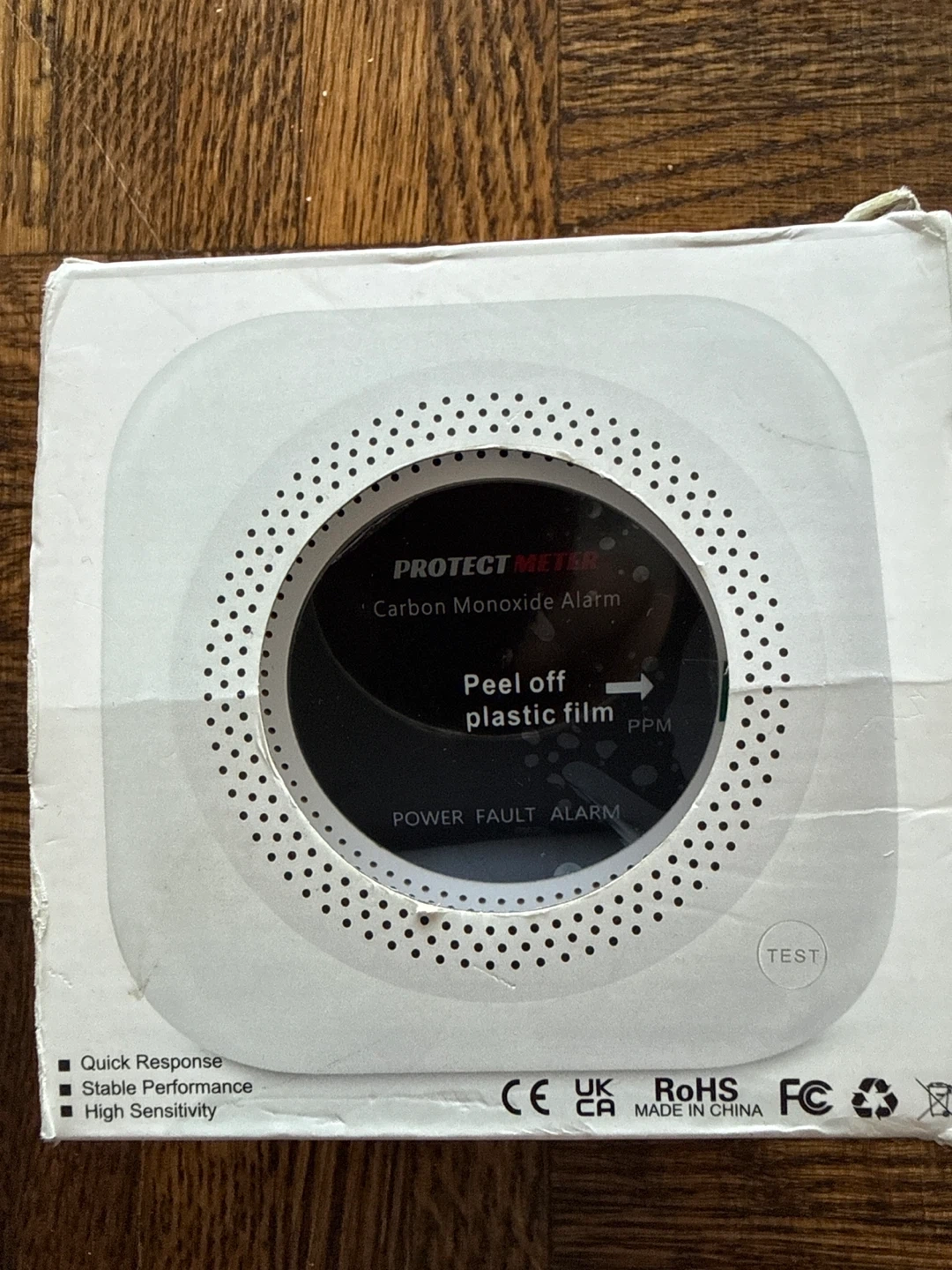 Selling a Protect Meter carbon monoxide alarm. It features quick response, stable performance, and high sensitivity. It also has a power fault alarm and a test button.
