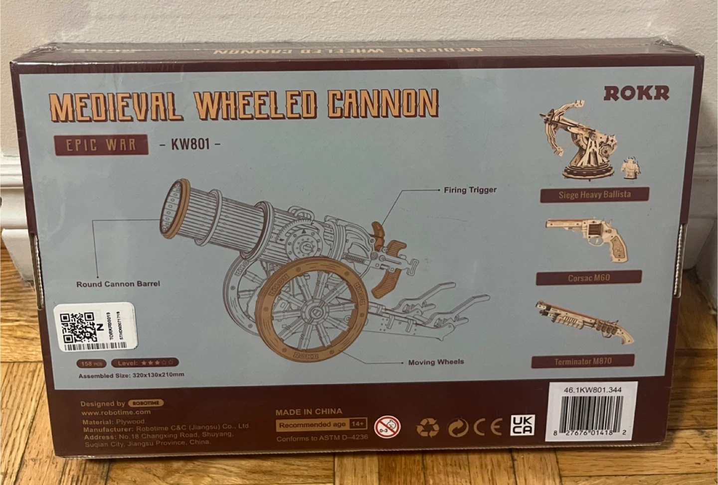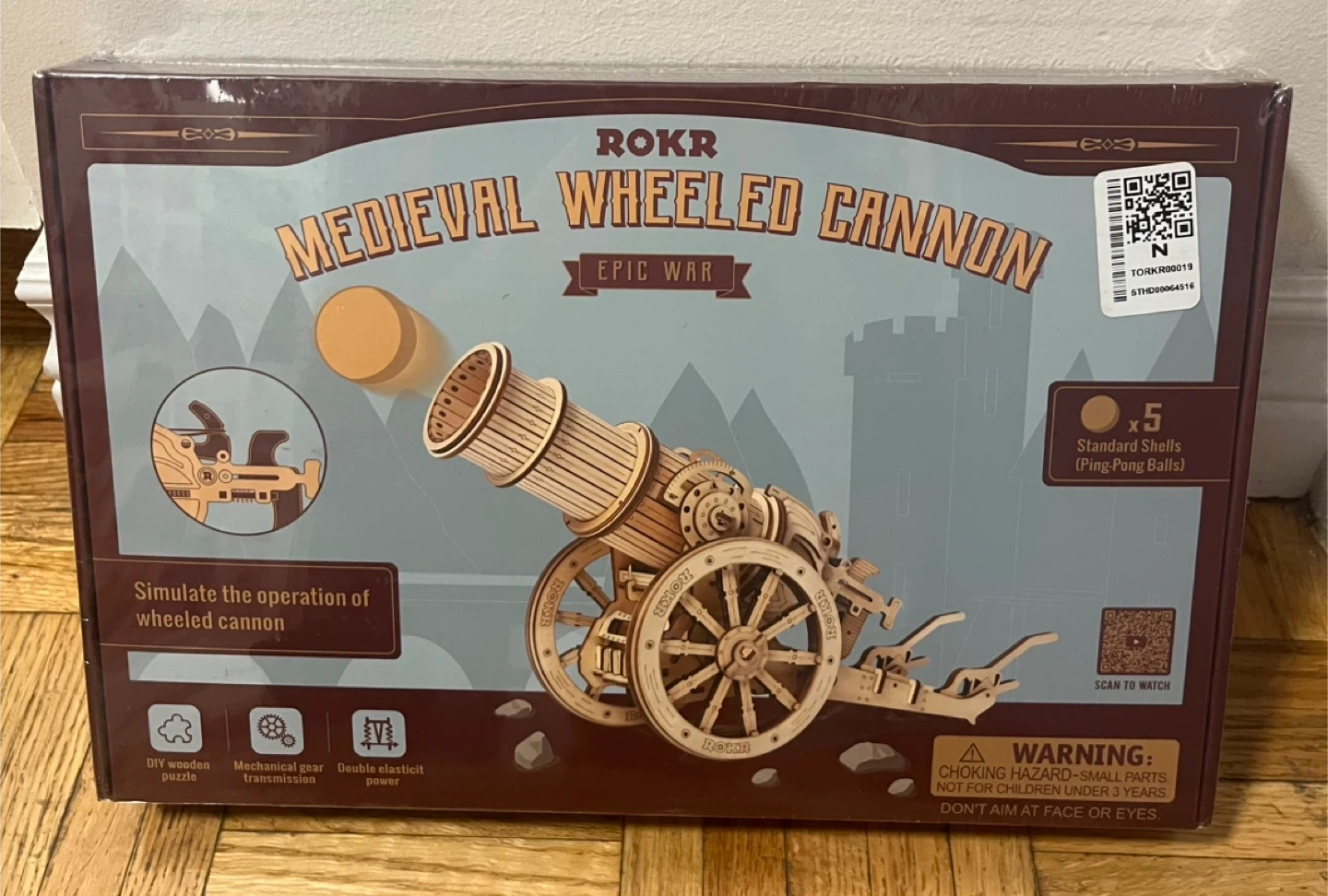 Selling a brand new ROKR Medieval Wheeled Cannon model kit! It's still sealed in its box and ready for assembly.Cash only