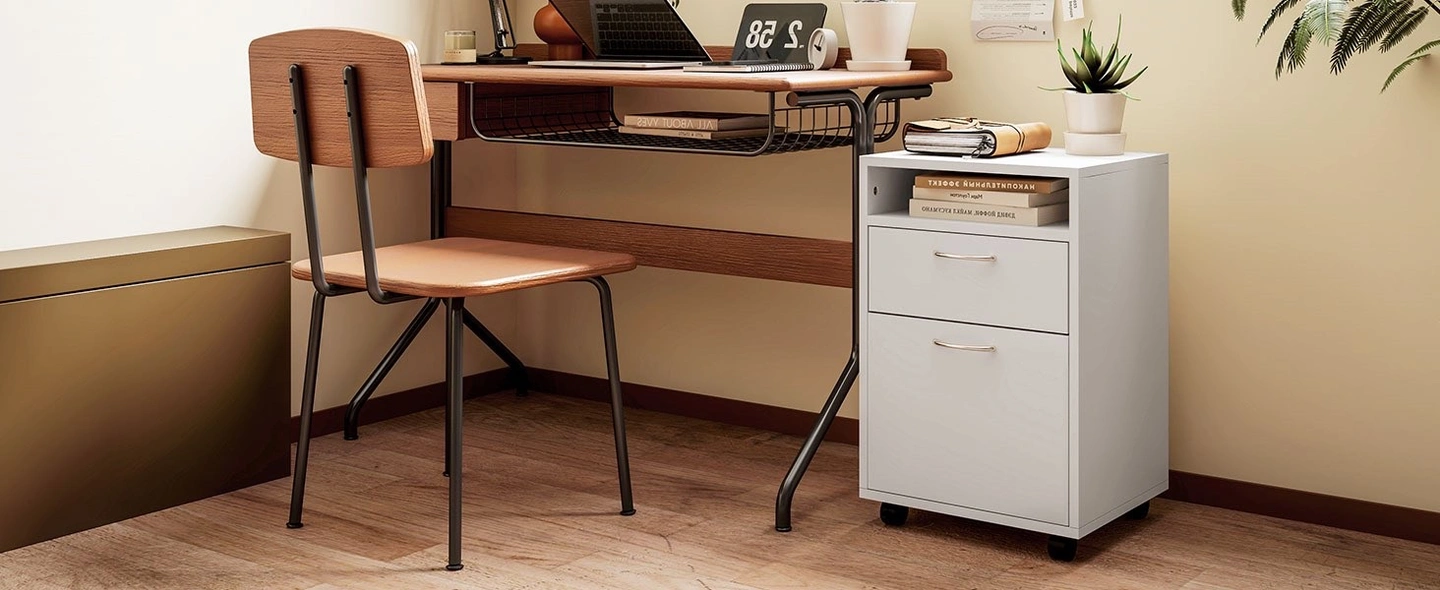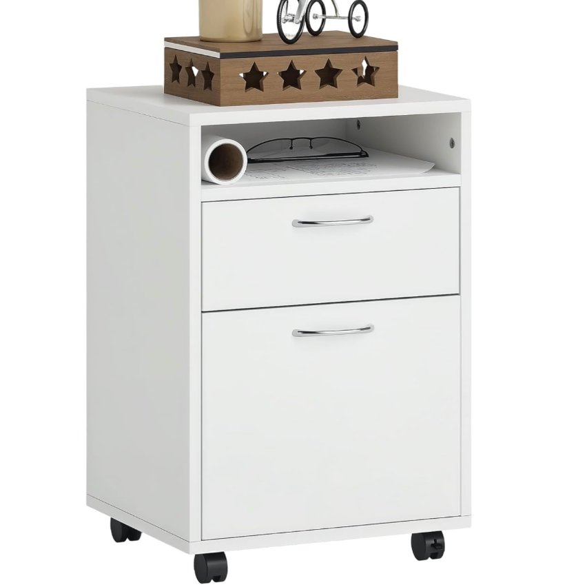Everything in a Place: If you're short on space but need storage for paperwork, books, or office devices, this filing cabinet helps keep things organized