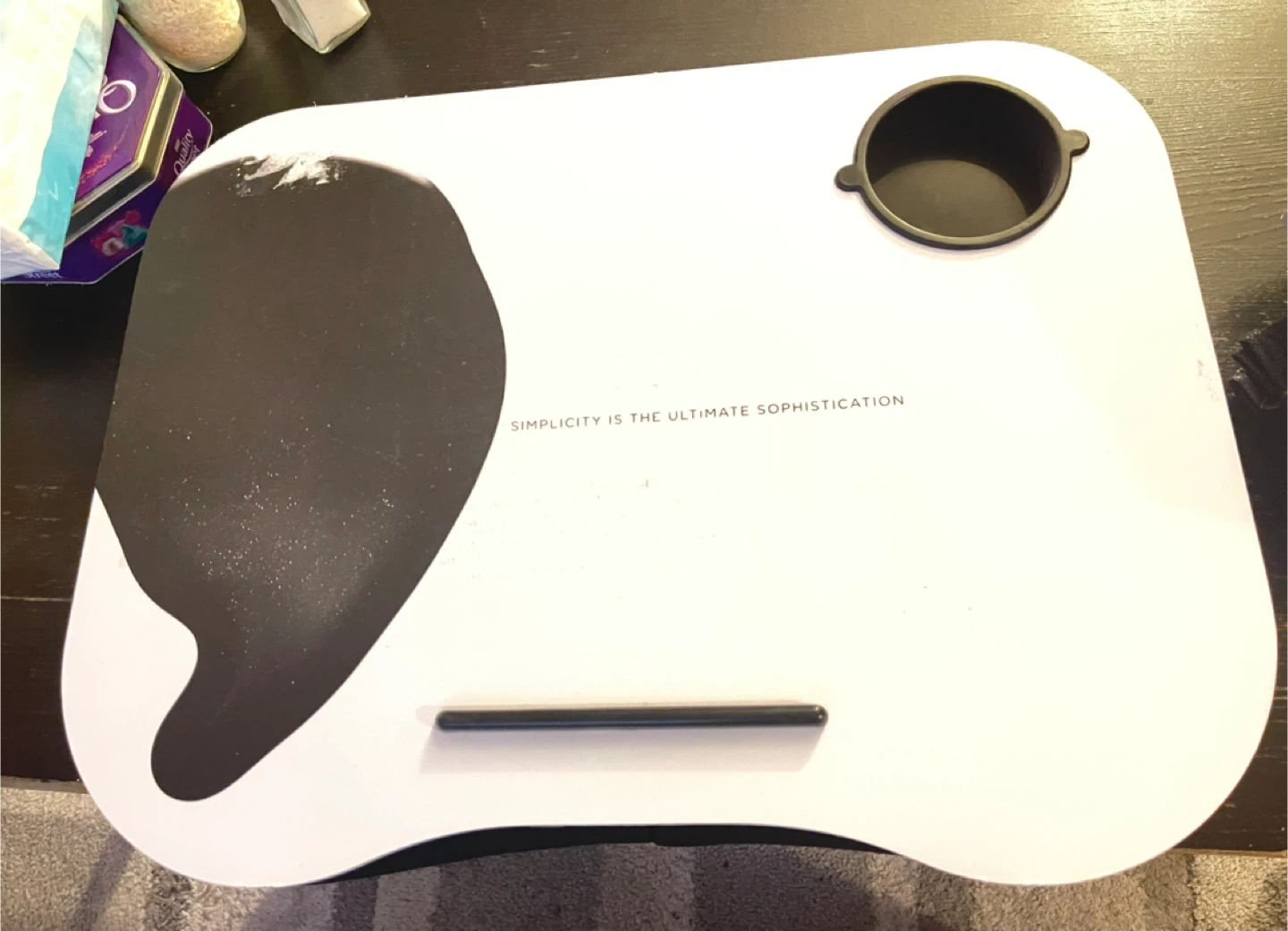 Selling a lap desk that's perfect for working or relaxing anywhere in your home! It features a soft, cushioned base for comfort and a built-in cup holder to keep your drink secure. The surface is spacious enough for a laptop and more