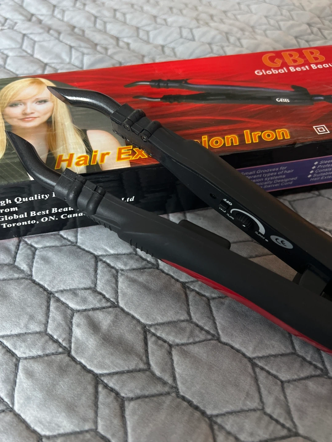Designed for hair extensions. Selling a GBB Global Best Beauty hair extension iron.
