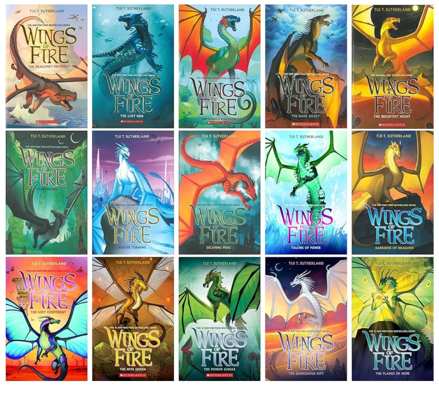 Wings of Fire 15 Books Collection Set includes: #01: The Dragonet Prophecy; #02: The Lost Heir; #03: The Hidden Kingdom; #04: The Dark Secret; #05: The Brightest Night; #06: Moon Rising; #07: Winter Turning; #08: Escaping Peril; #09: Talons Of Power; #10: Darkness Of Dragons; #11: The Lost Continent; #12: The Hive Queen; #13: The Poison Jungle; #14: The Dangerous Gift; #15: The Flames Of Hope