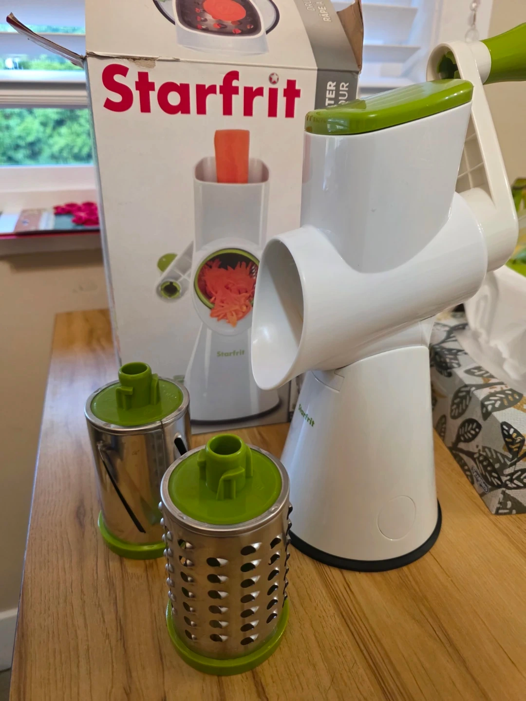 Selling a Starfrit Drum Grater in excellent condition! It comes with the box and two different drums: a grating drum and a slicing drum. Perfect for quickly grating or slicing vegetables and cheese for your favourite recipes.