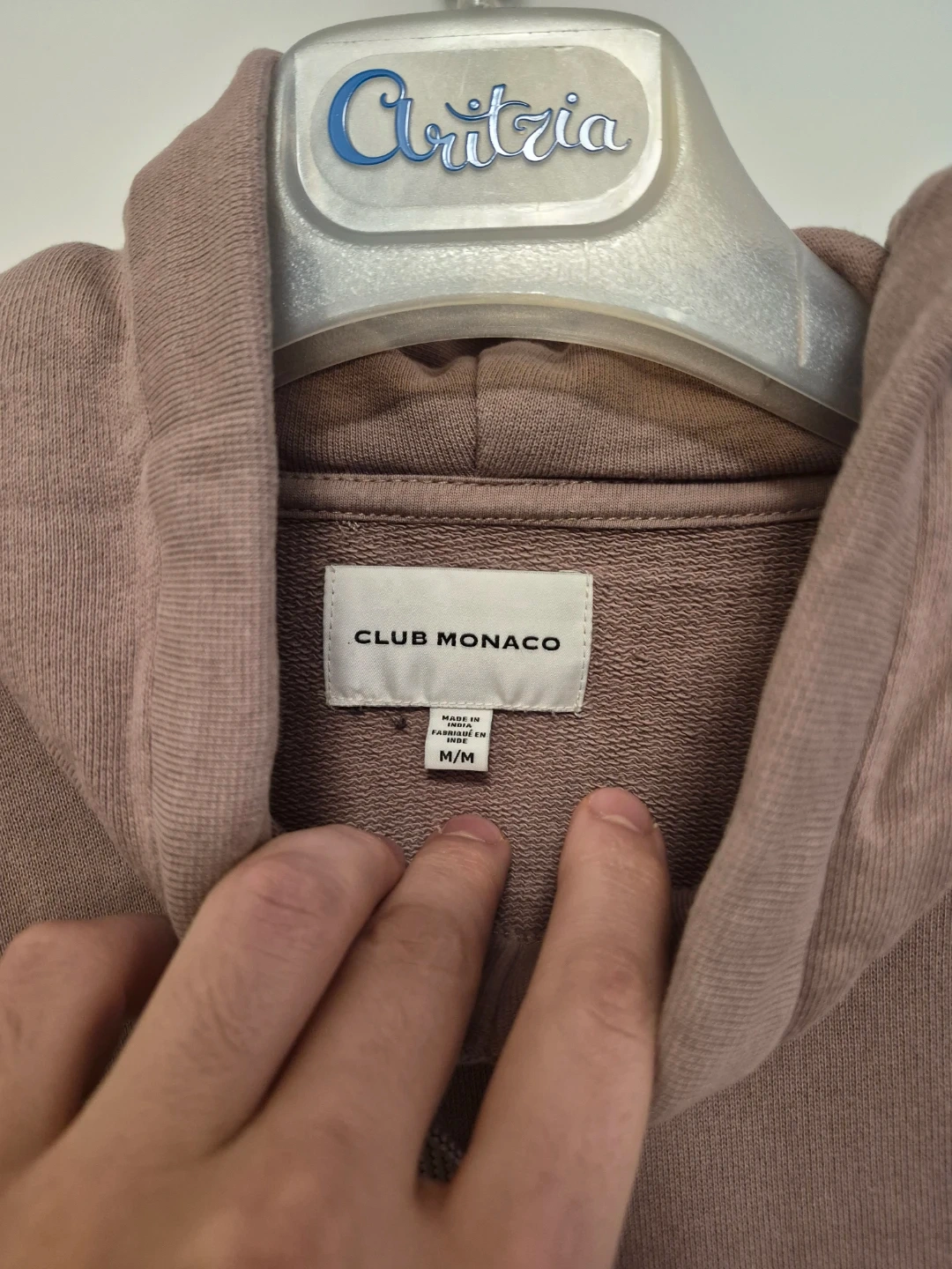 Selling a Club Monaco hoodie. It's a size M/M and made of 100% cotton. The ribbing is 97% cotton and 3% elastane. This hoodie is super comfy and in great condition.
