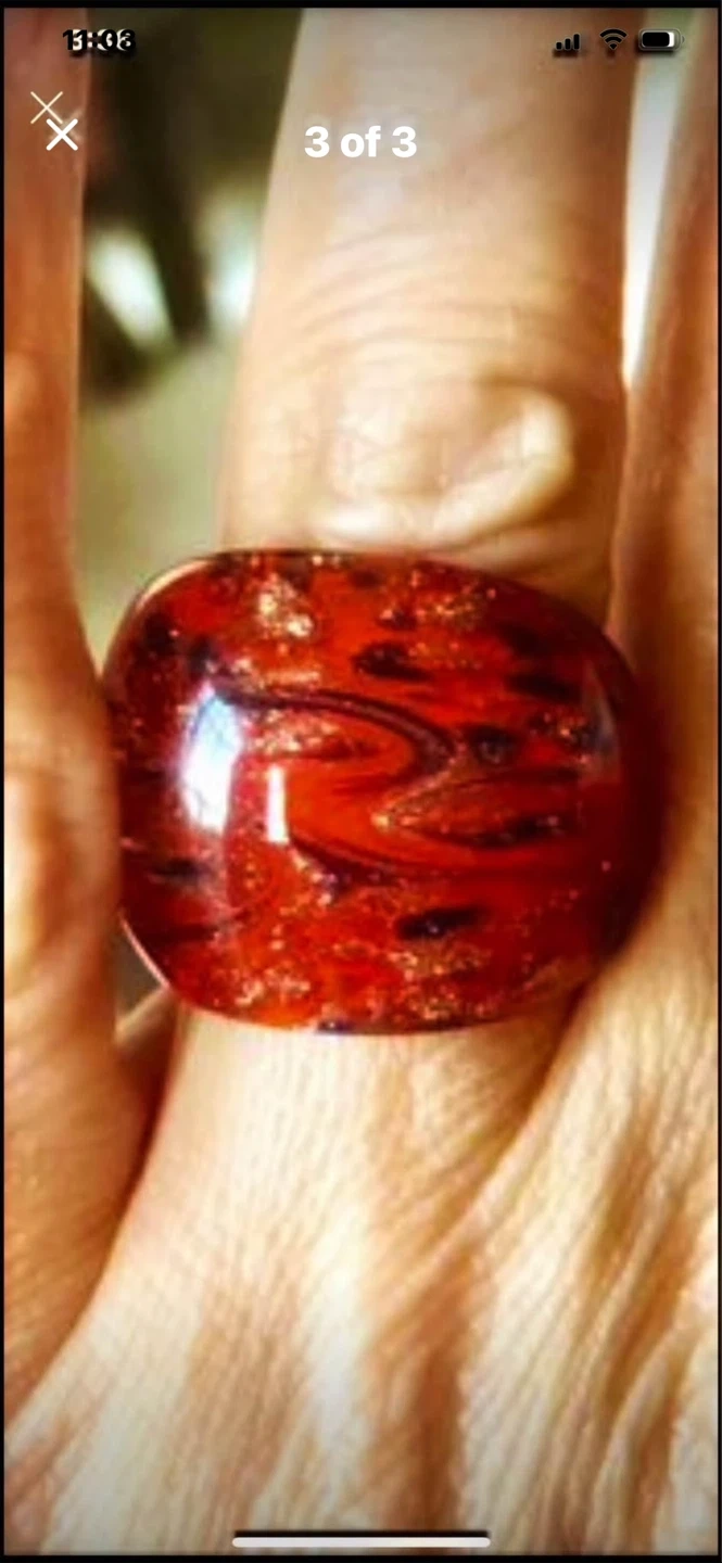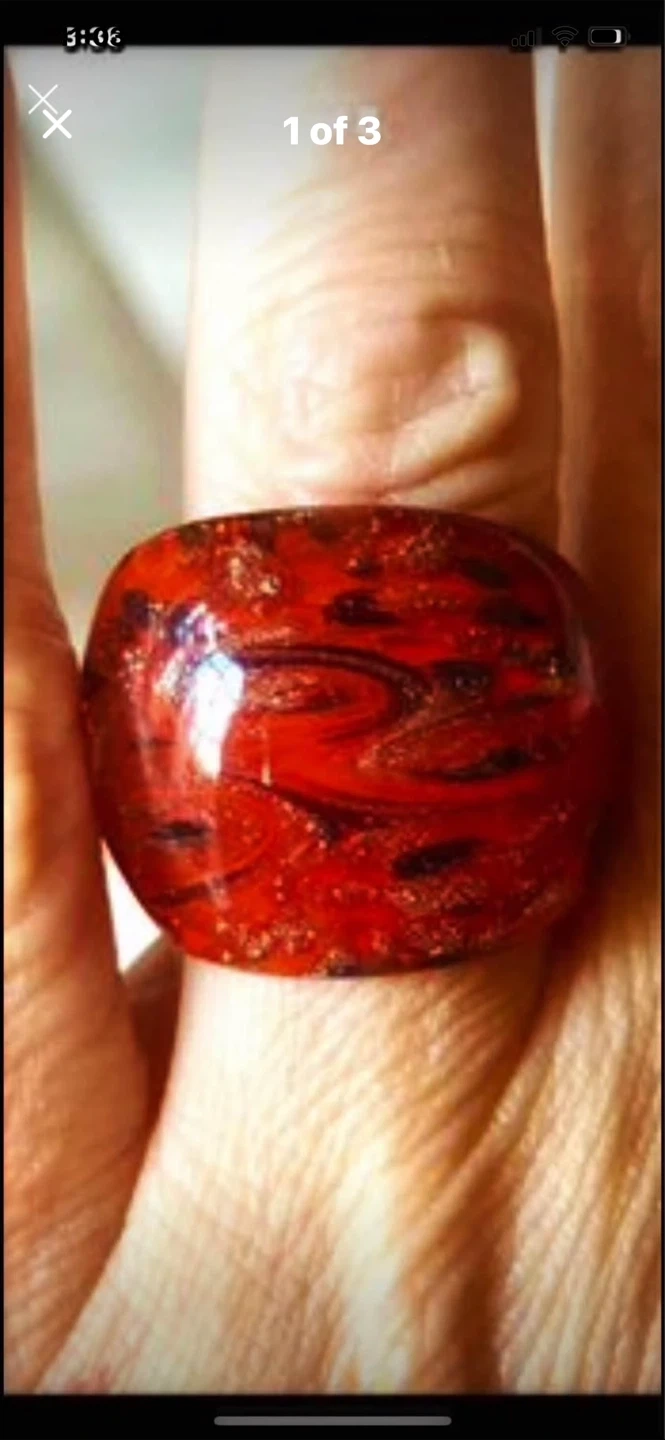 ❤️Selling a unique & fabulous Ruby red Murano glass ring. Size 6.5❤️ It has a lovely marbled pattern and is in great condition. It's a statement piece that will add a pop of colour to any outfit!