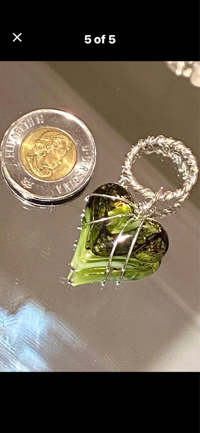 Buy & Sell💚Jade Green Heart Murano Glass Pendant💚Jade Green Heart Murano Glass Pendant$66💚Unique Murano Jade green glass heart pendant in Sterling silver is a beautiful piece!💚ConditionNewSize3 inch BrandMurano glass WHERE TO MEETDundarave Beach West VancouverView MapSELLERverifiedEvelynDundarave Beach721 review0 chats·0 favorites·28 viewsSEND CHAT TO SELLERHi Evelyn! I’m interested in your listing.Hi Evelyn! I’m interested in your listing.Get the Karrot app to chatSign In to chat