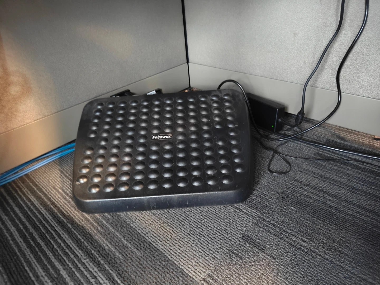 Selling a Fellowes footrest in black. It's in good condition and ready to provide some comfort to your workspace! Great for improving posture and circulation while you work or study