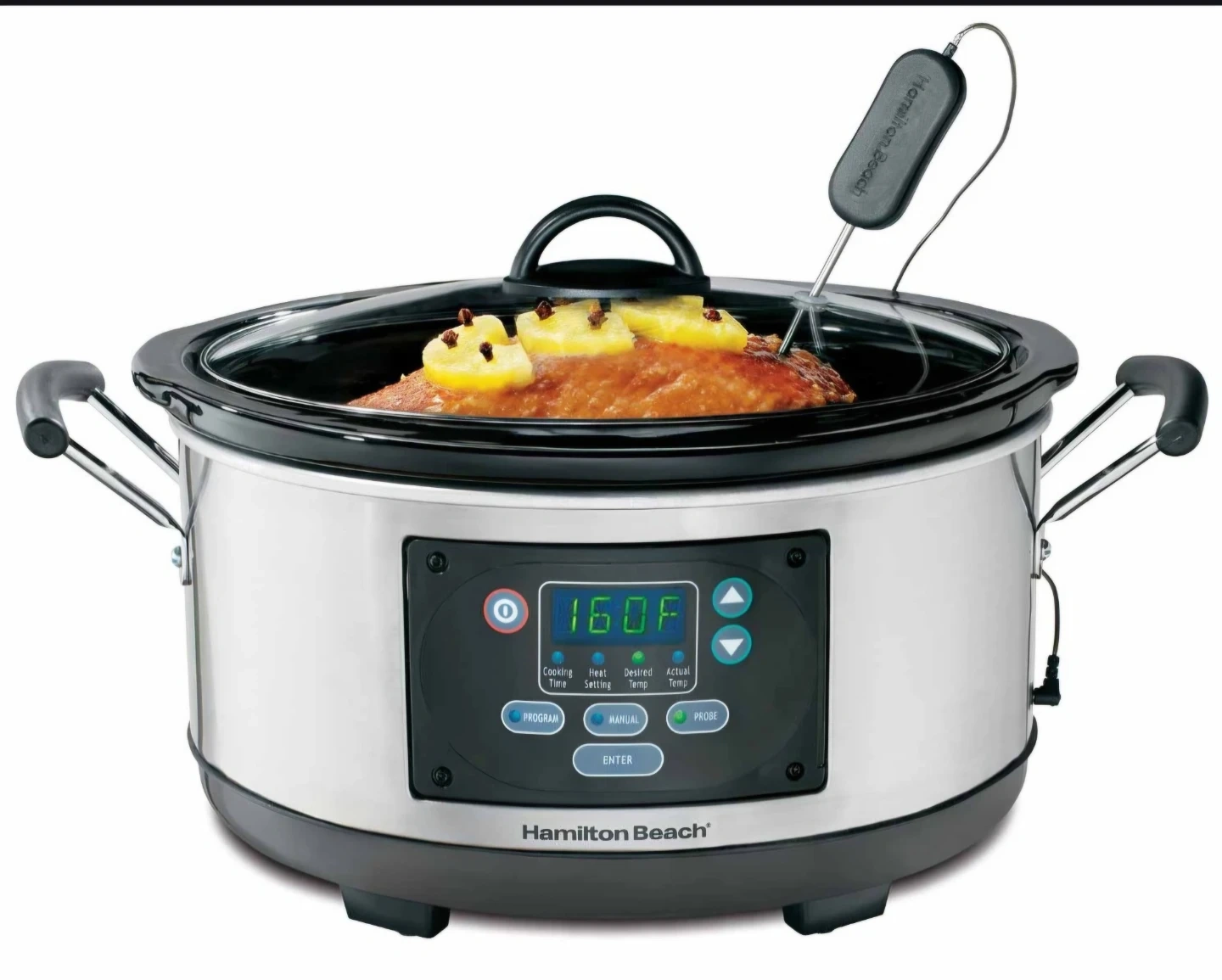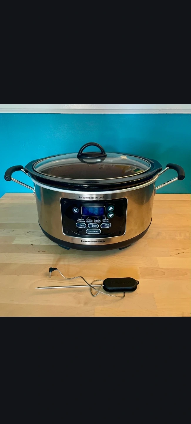 I'm selling a Hamilton Beach Portable 6 Quart Set & Forget Digital Programmable Slow Cooker with Lid Lock and Temperature Probe. It is dishwasher safe for the crock and lid, and made of stainless steel. Used a couple of times, too big for cooking for 1 person. It's like new!