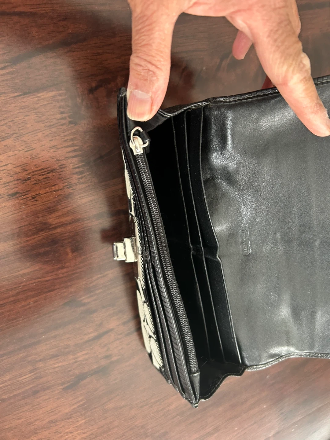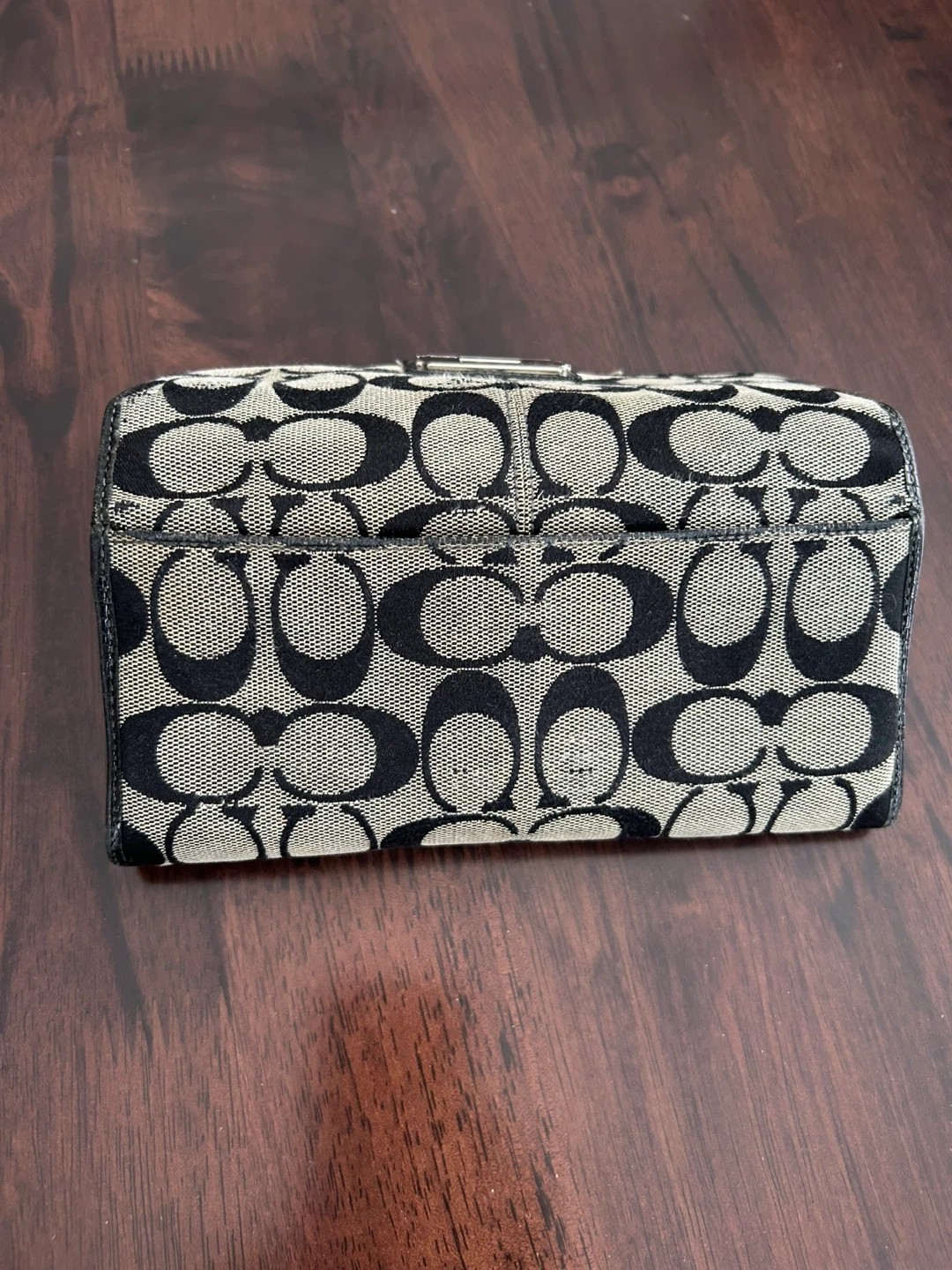 Selling a Coach wallet with a signature design. It's in great condition and has a secure closure. Perfect for keeping your cards and cash organized!
