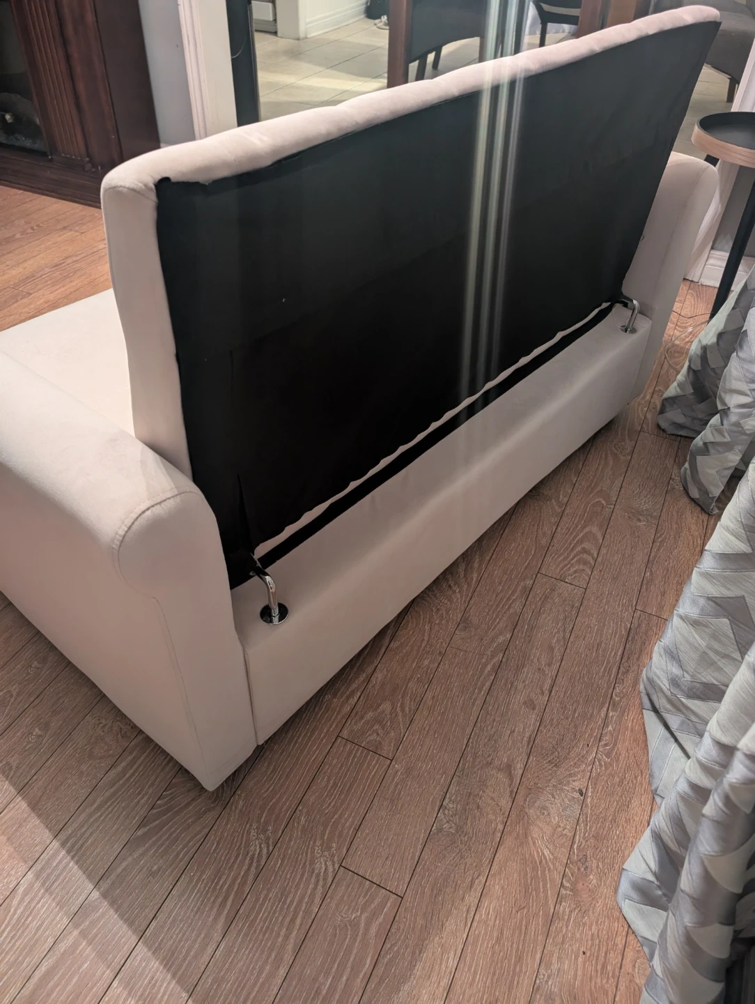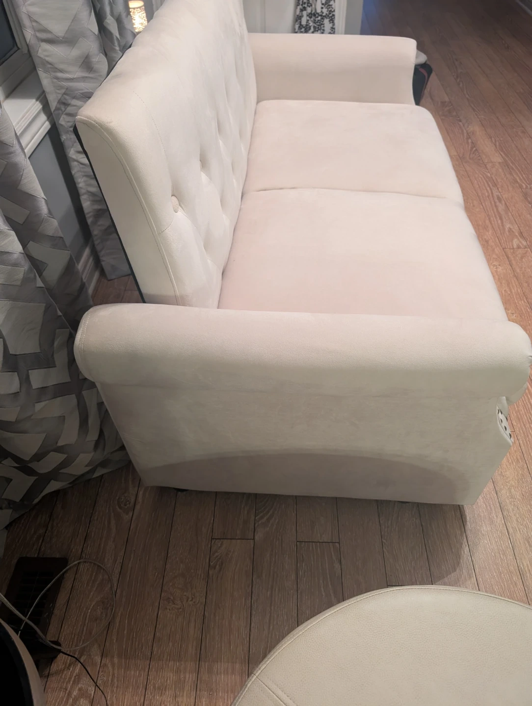 Selling a sofa bed in excellent condition! It's a lovely beige colour and would be perfect for a living room or guest room. It easily converts into a bed for extra sleeping space. The material is soft and comfortable, making it a cozy piece of furniture for any home