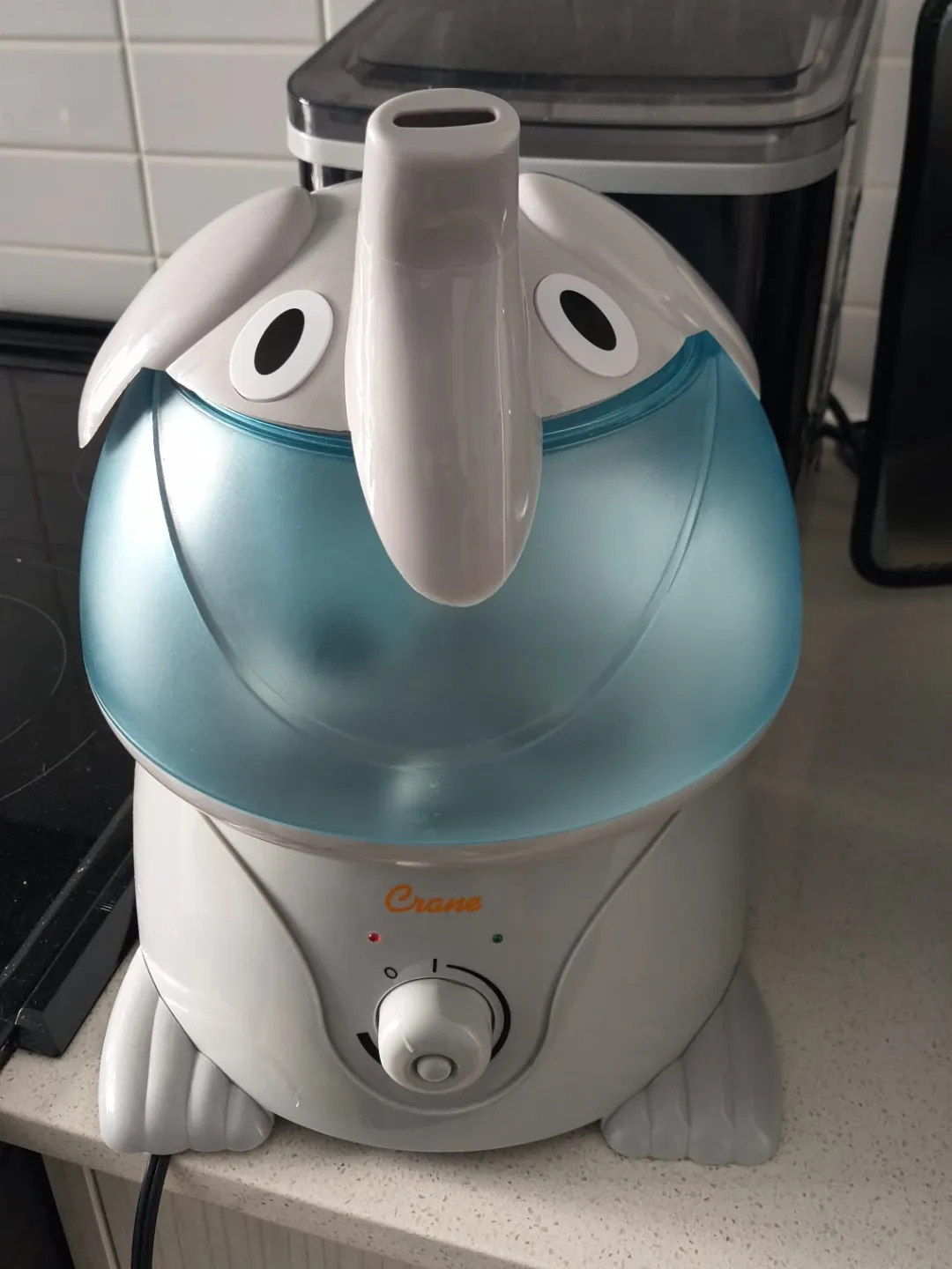Looking to add some moisture to the air? This Crane humidifier is perfect for small rooms! It's an ultrasonic cool mist humidifier, so it's quiet and safe to use around kids. The adorable design adds a touch of fun to any space