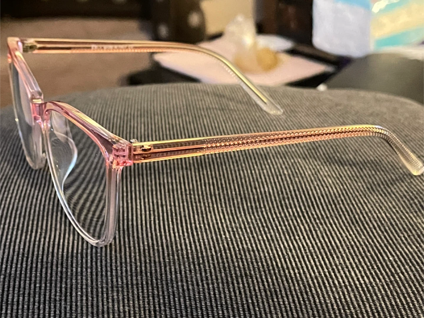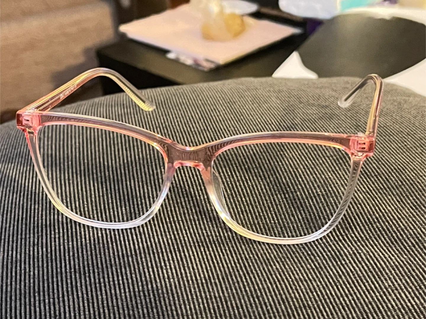 Selling a pair of eyeglasses frames in a lovely pink colour! They're in great shape and never used.