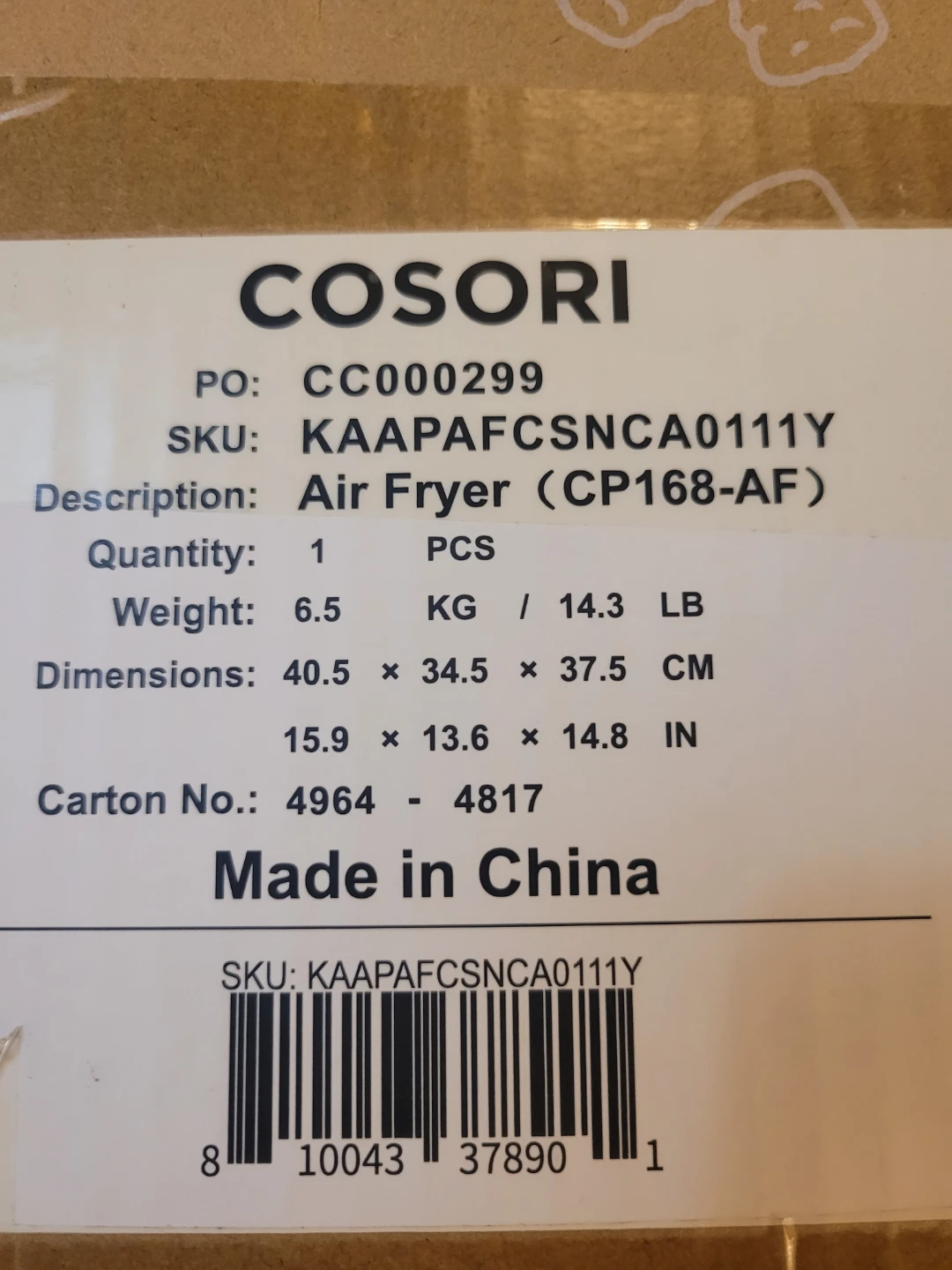 New COSORI Air Fryer 5.8 QT XL