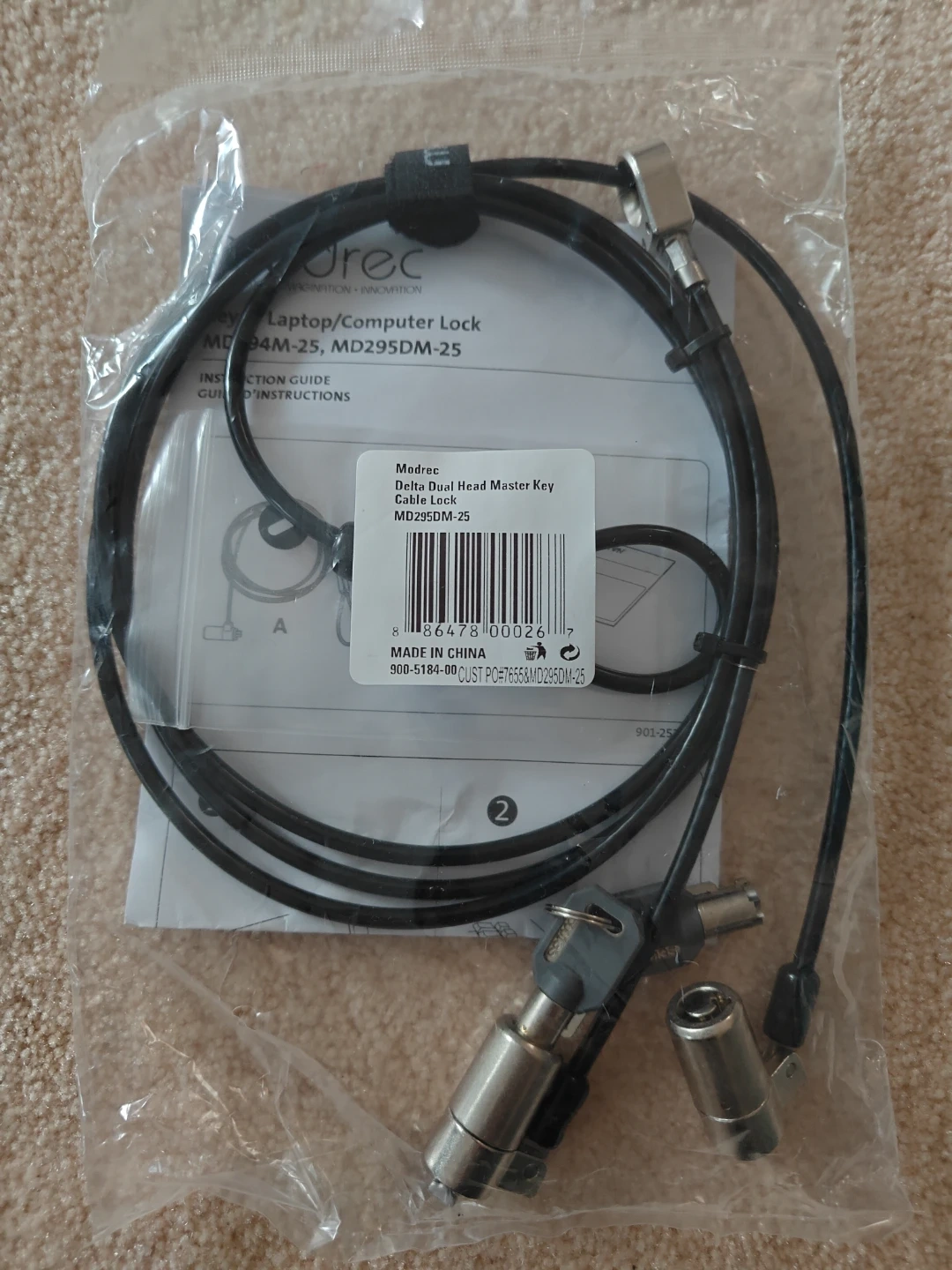 Selling a Modrec Delta Dual Head Master Key Cable Lock, model MD295DM-25. It's still in its original packaging and includes the keys! Perfect for securing your laptop or computer.