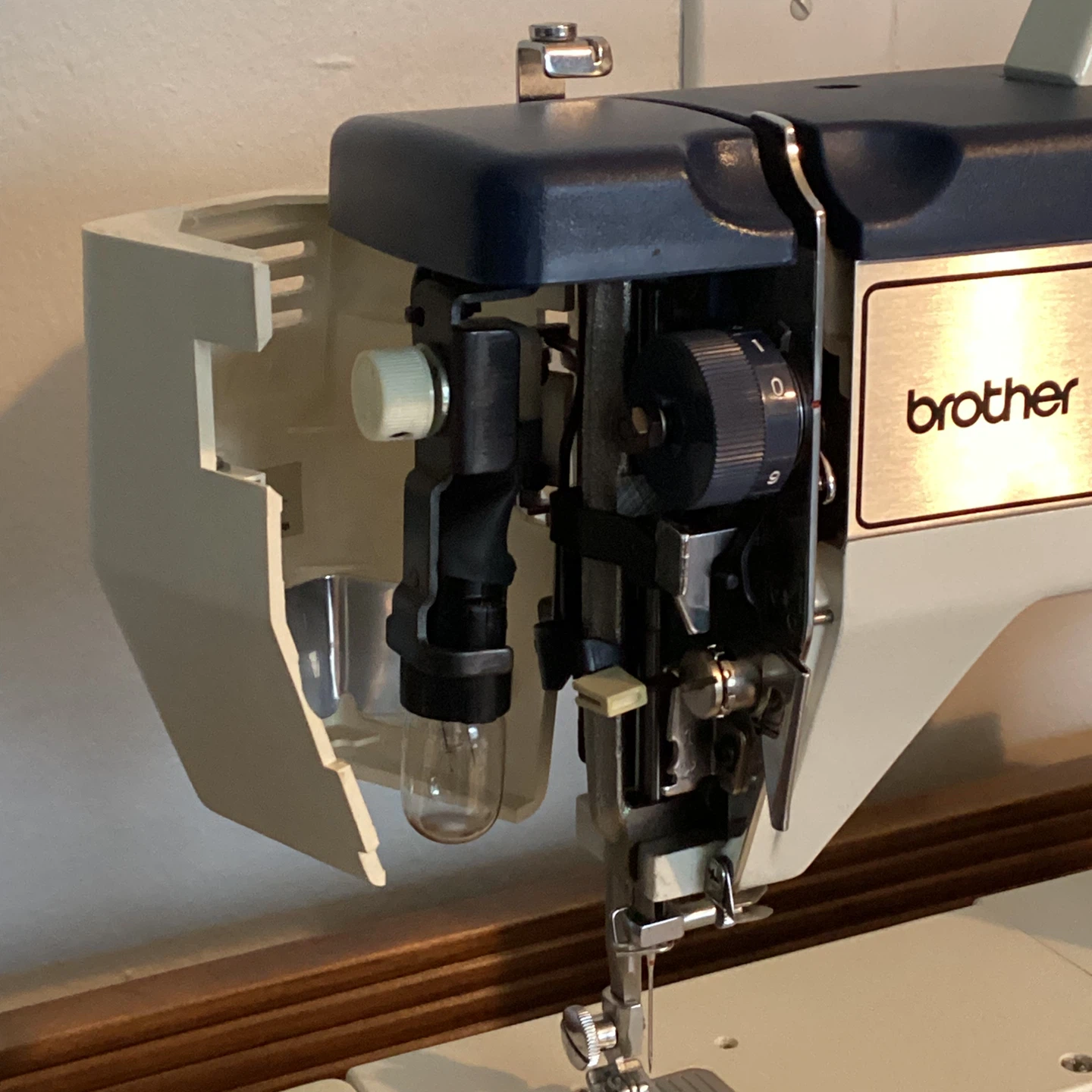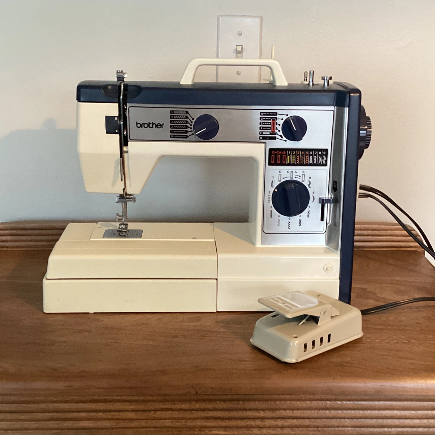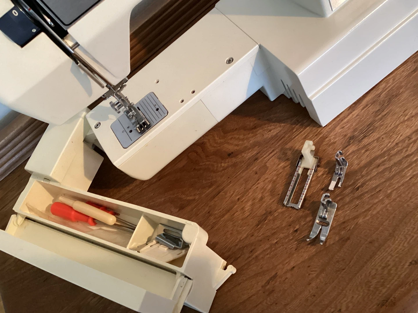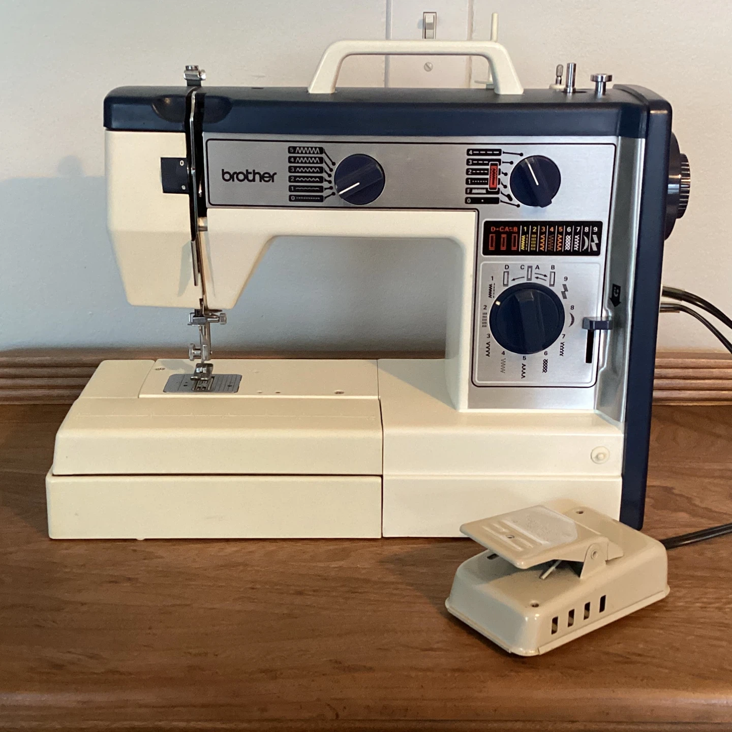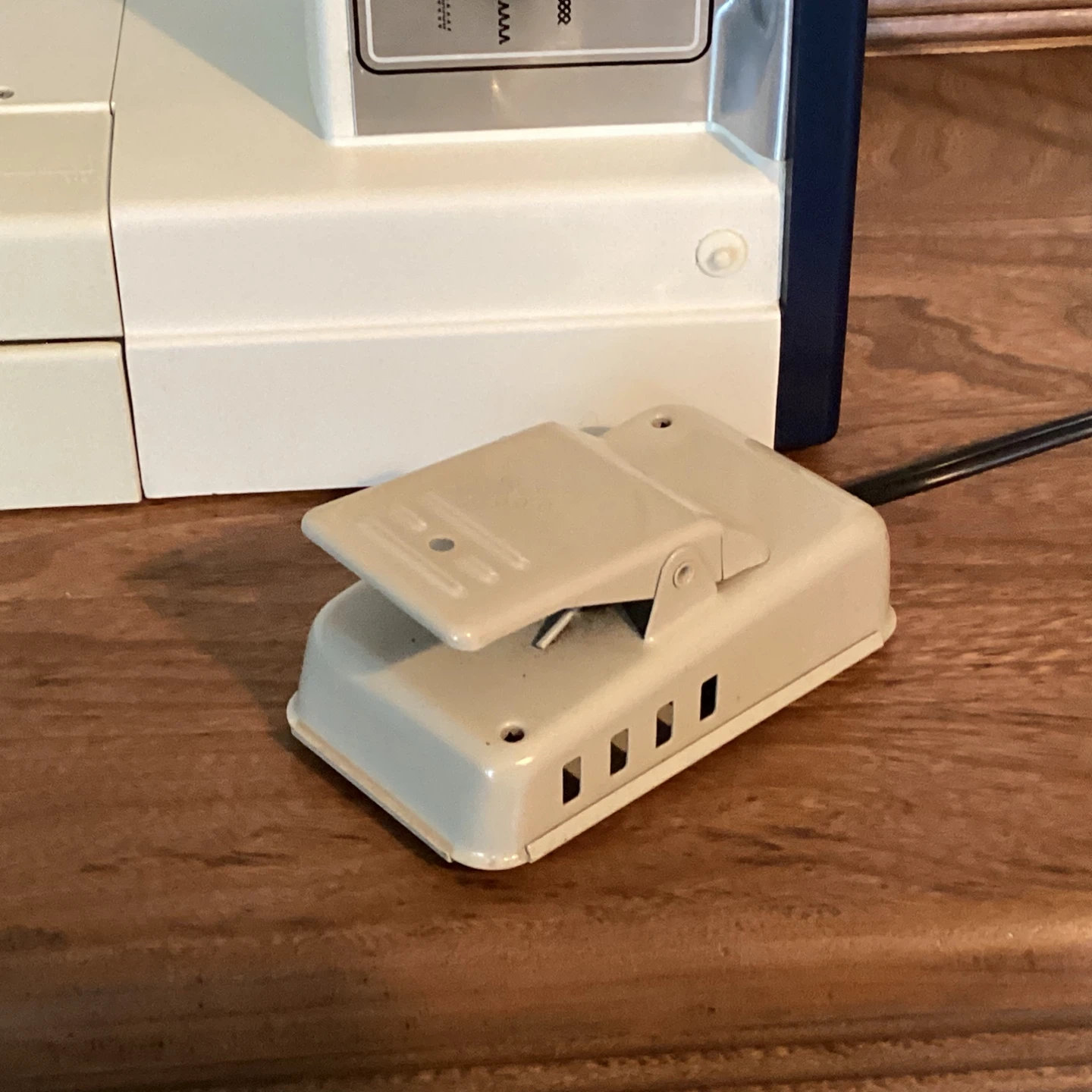 In good working condition for some basic sewing projects. Comes with foot pedal and power cord, a few feet, and a couple bobbins.
