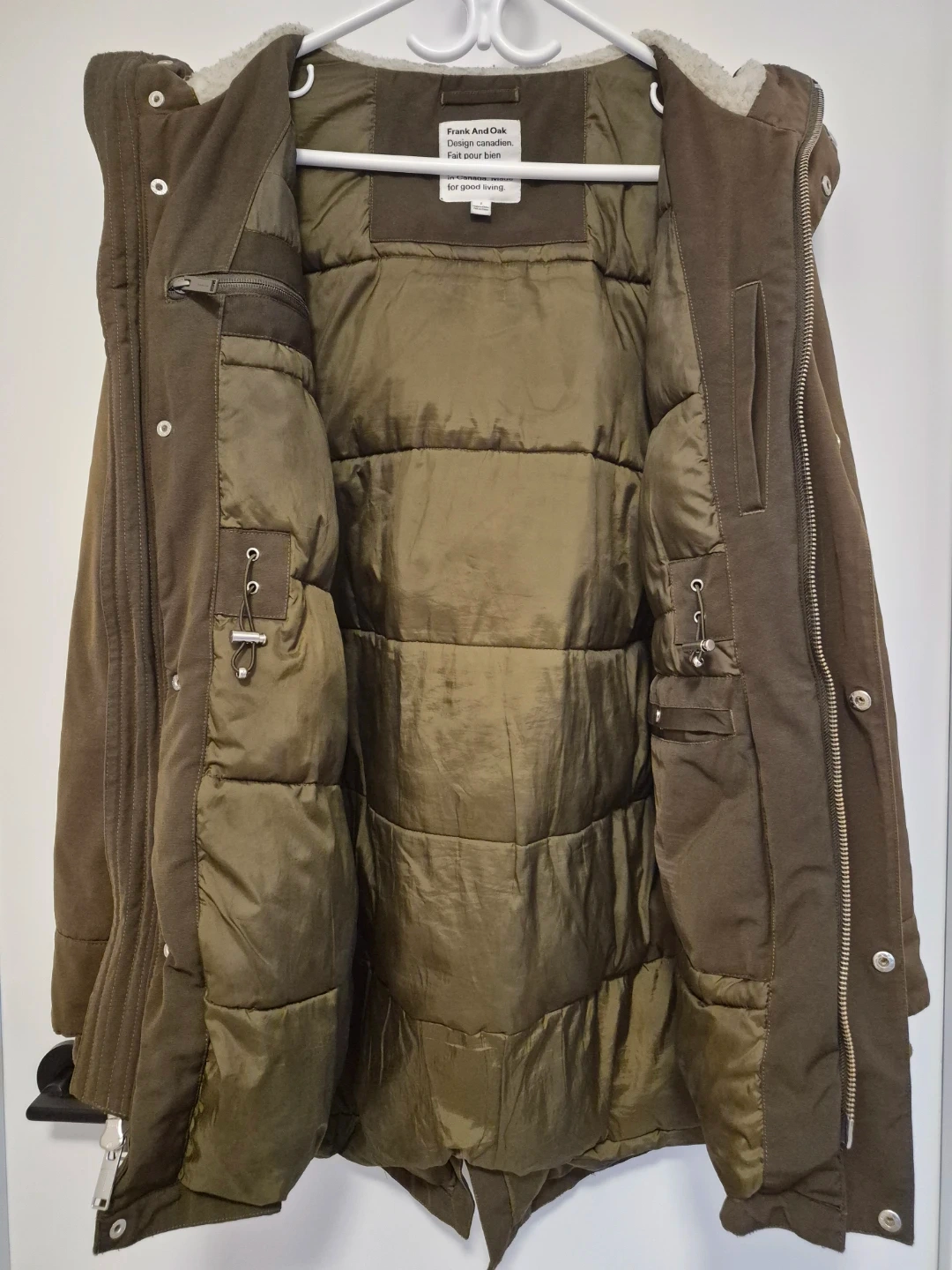 Frank And Oak Designed in Canada winter coat in olive green. Size Small but fits like a medium.