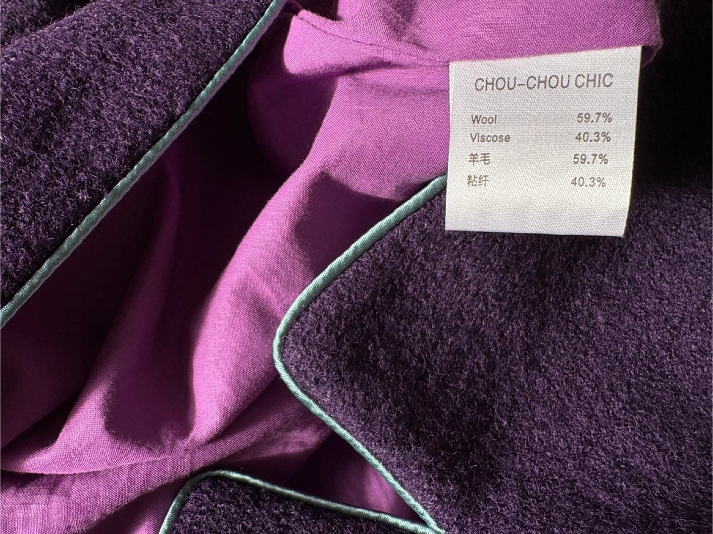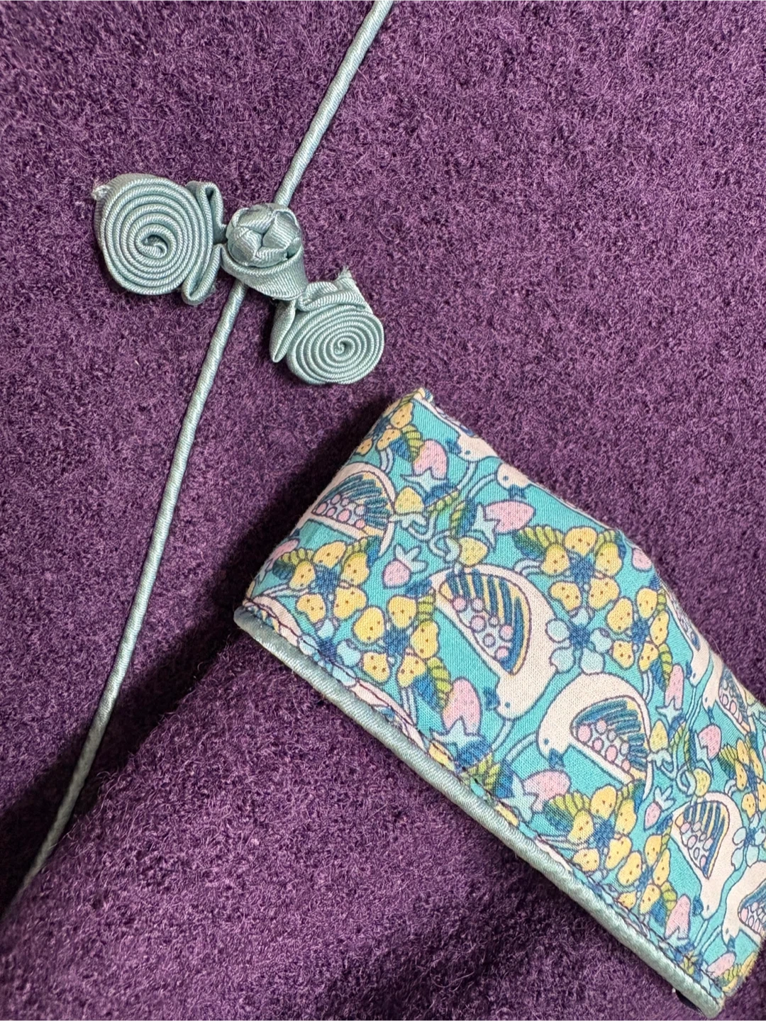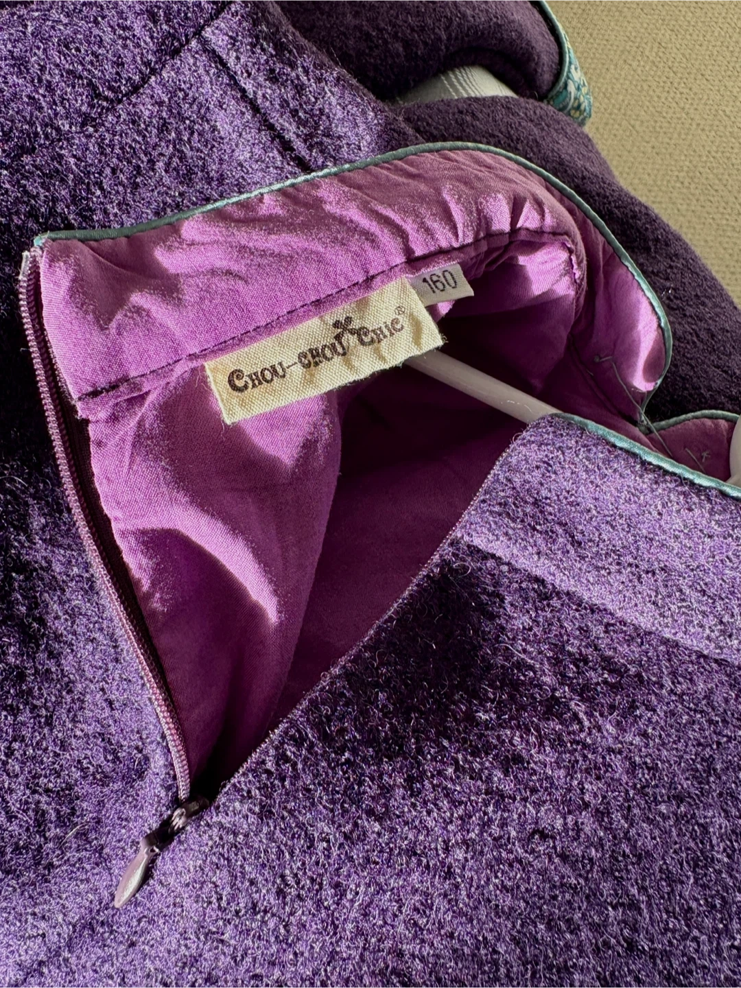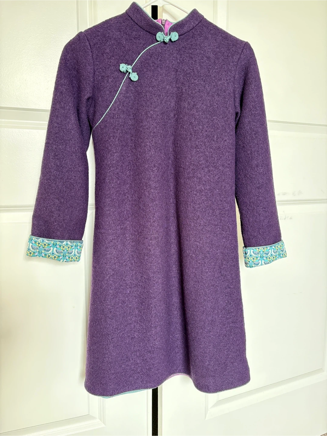 Purple wool cheongsam for older children, double-layered, suitable for ages 10-11, length and chest circumference 85 cm each.