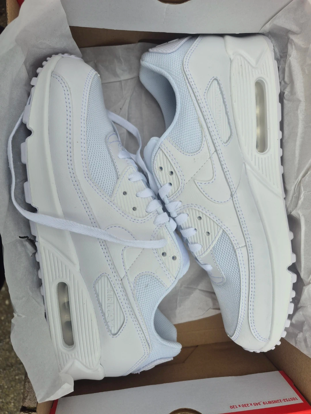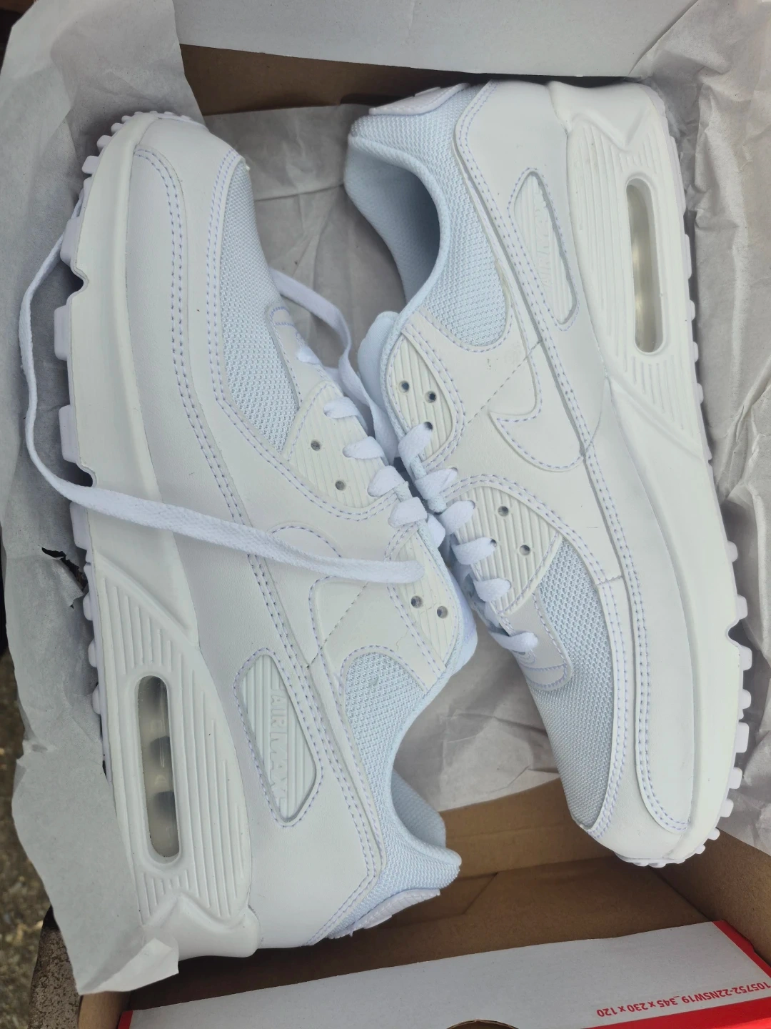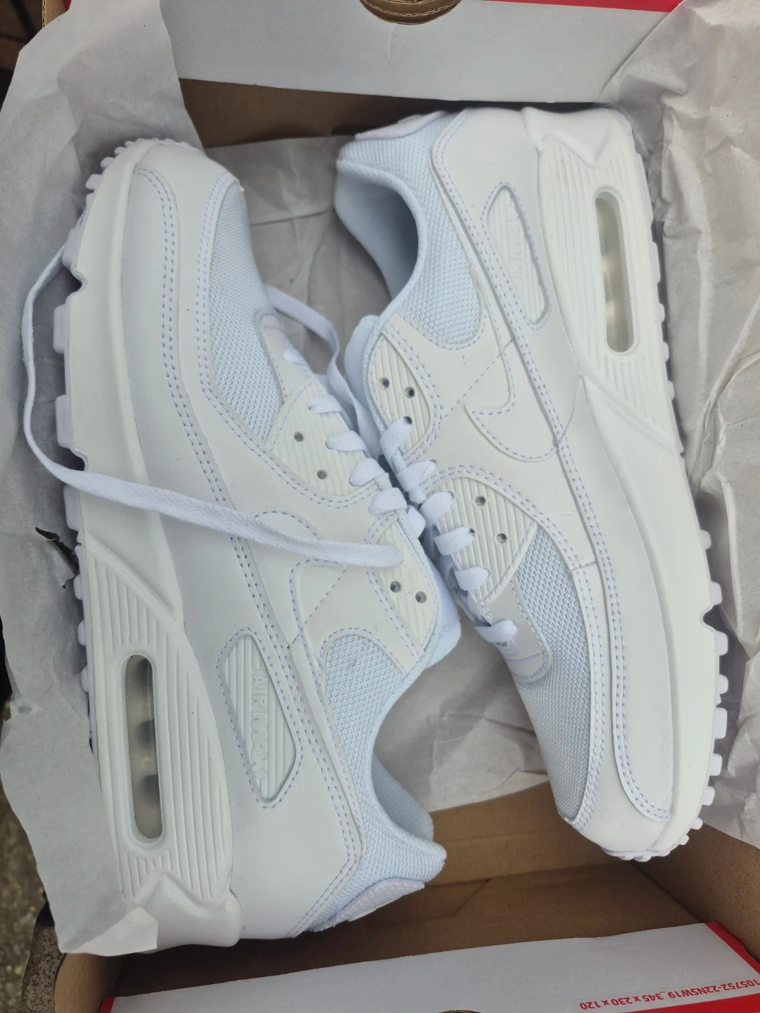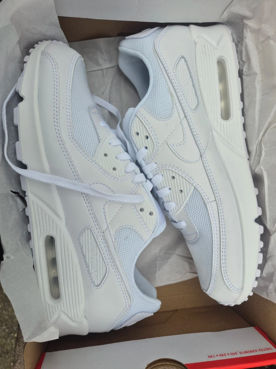Selling a pair of brand new Nike Air Max 90 sneakers in a clean triple white colourway! The shoes are in perfect condition and come with the original box. A classic and versatile style that goes with everything