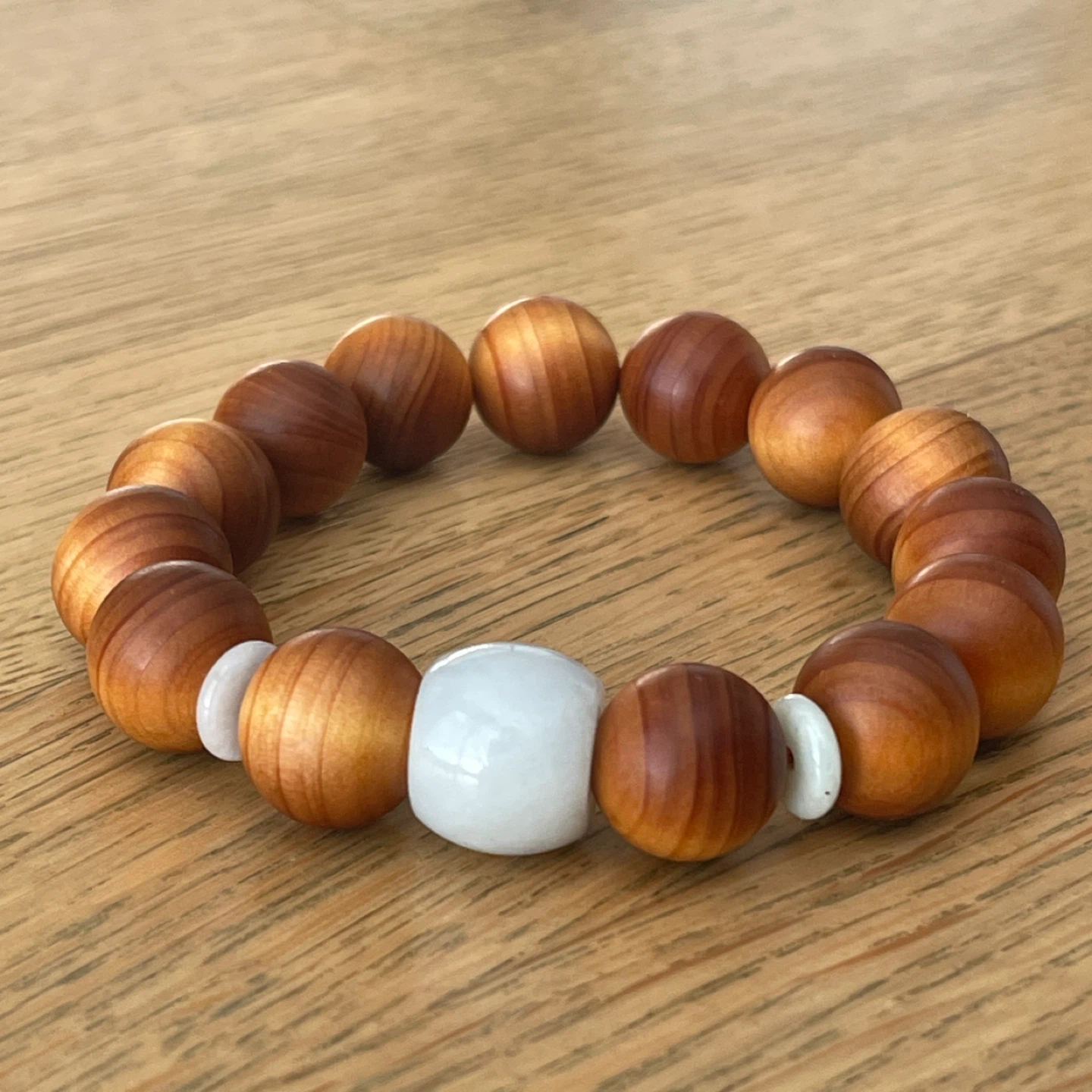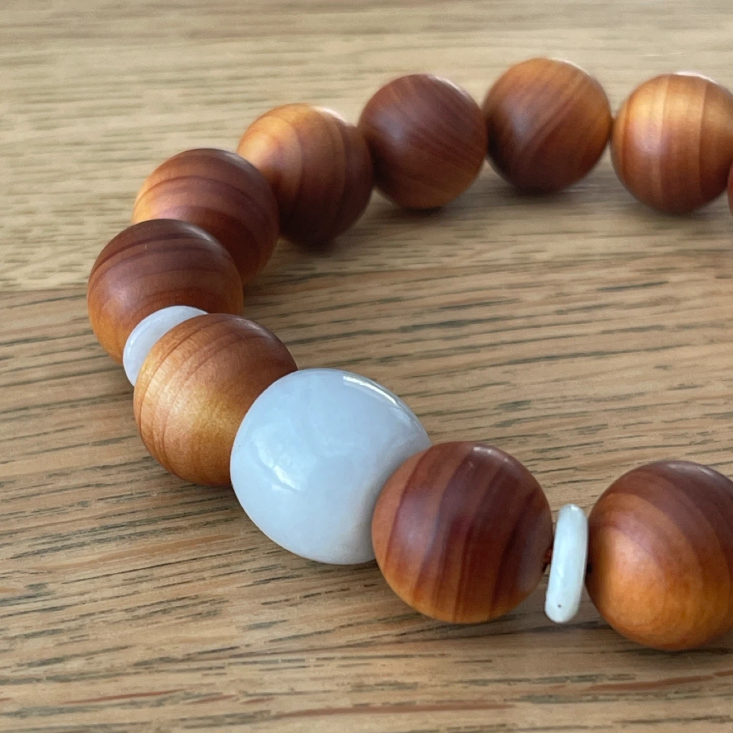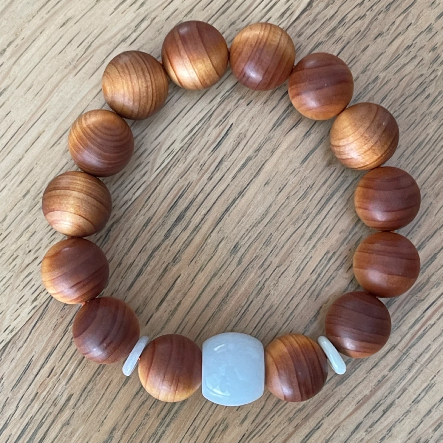 Jadeite Jade & wood bracelet (14mm bead) - Prosperity