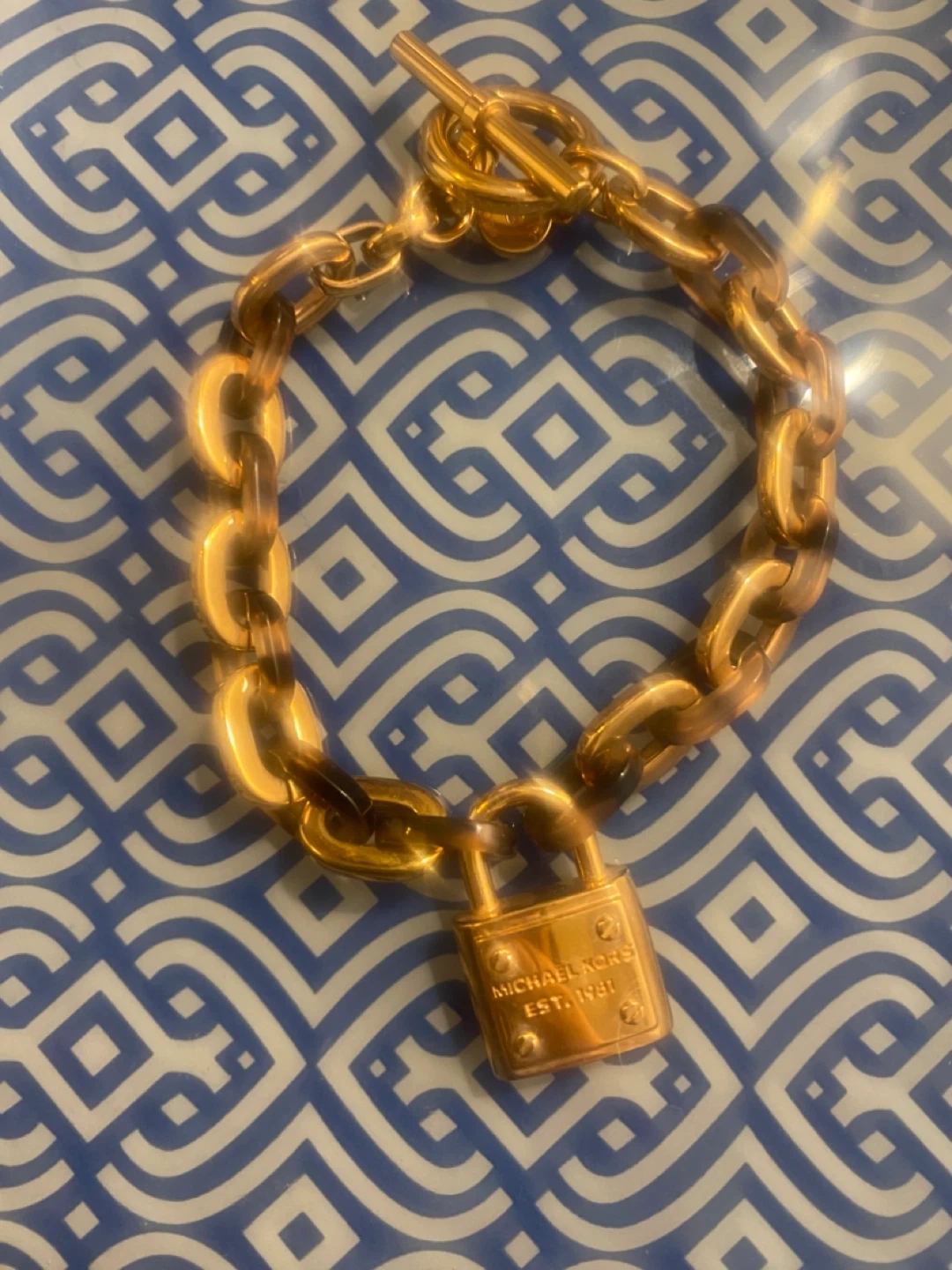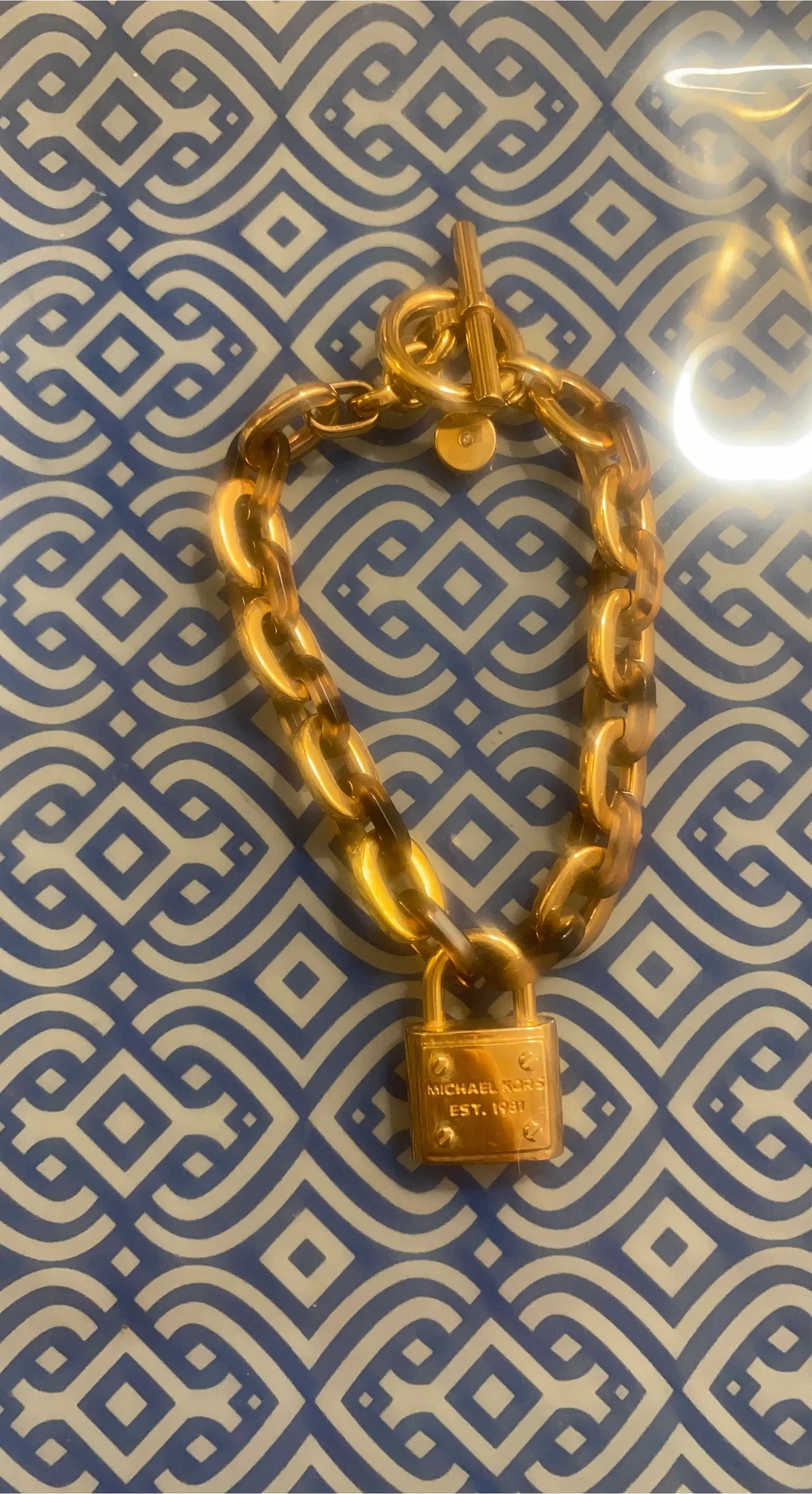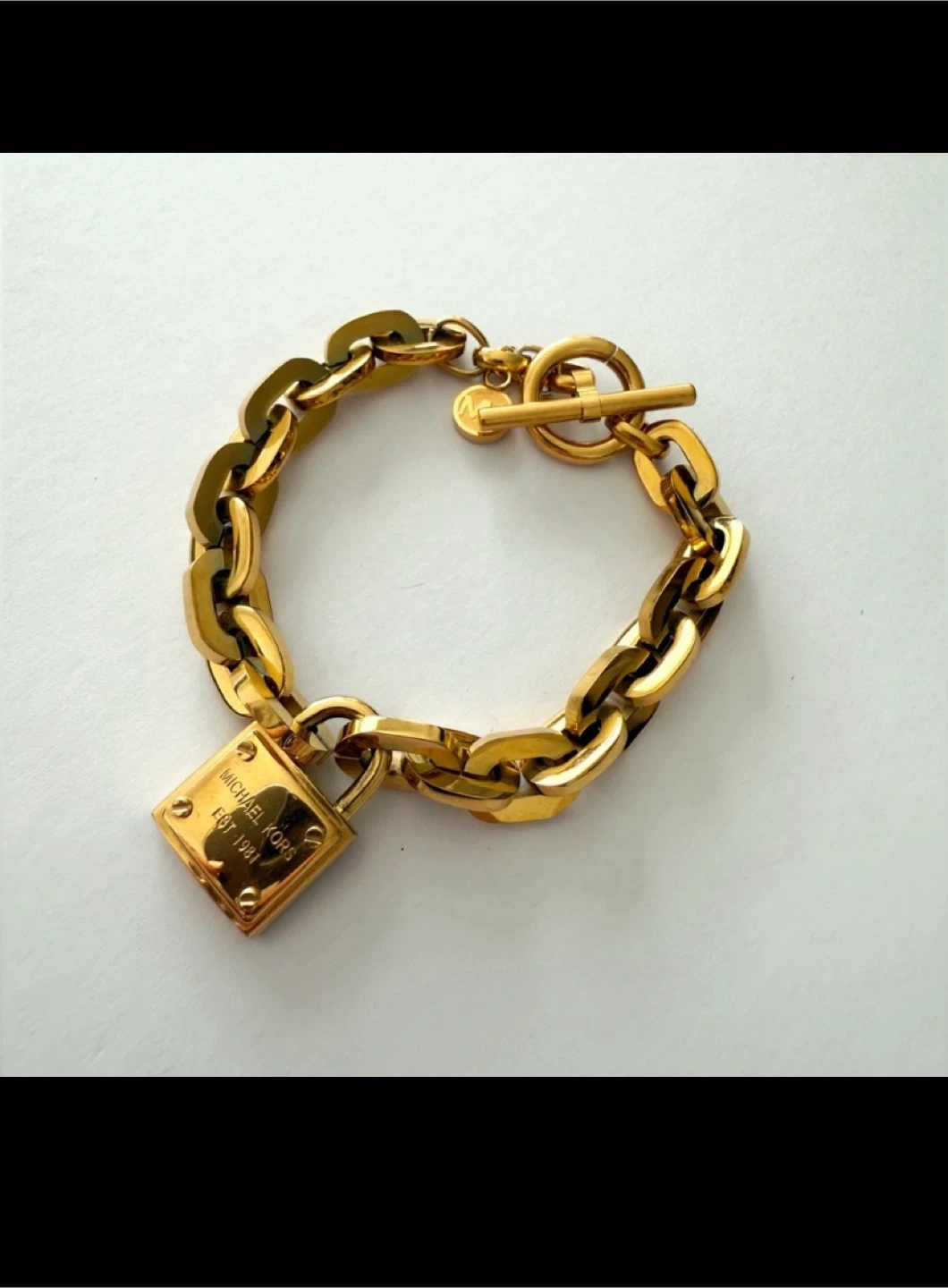 Selling a beautiful Michael Kors gold chain bracelet. It features a stylish chain link design with a padlock charm. Perfect for adding a touch of elegance to any outfit!