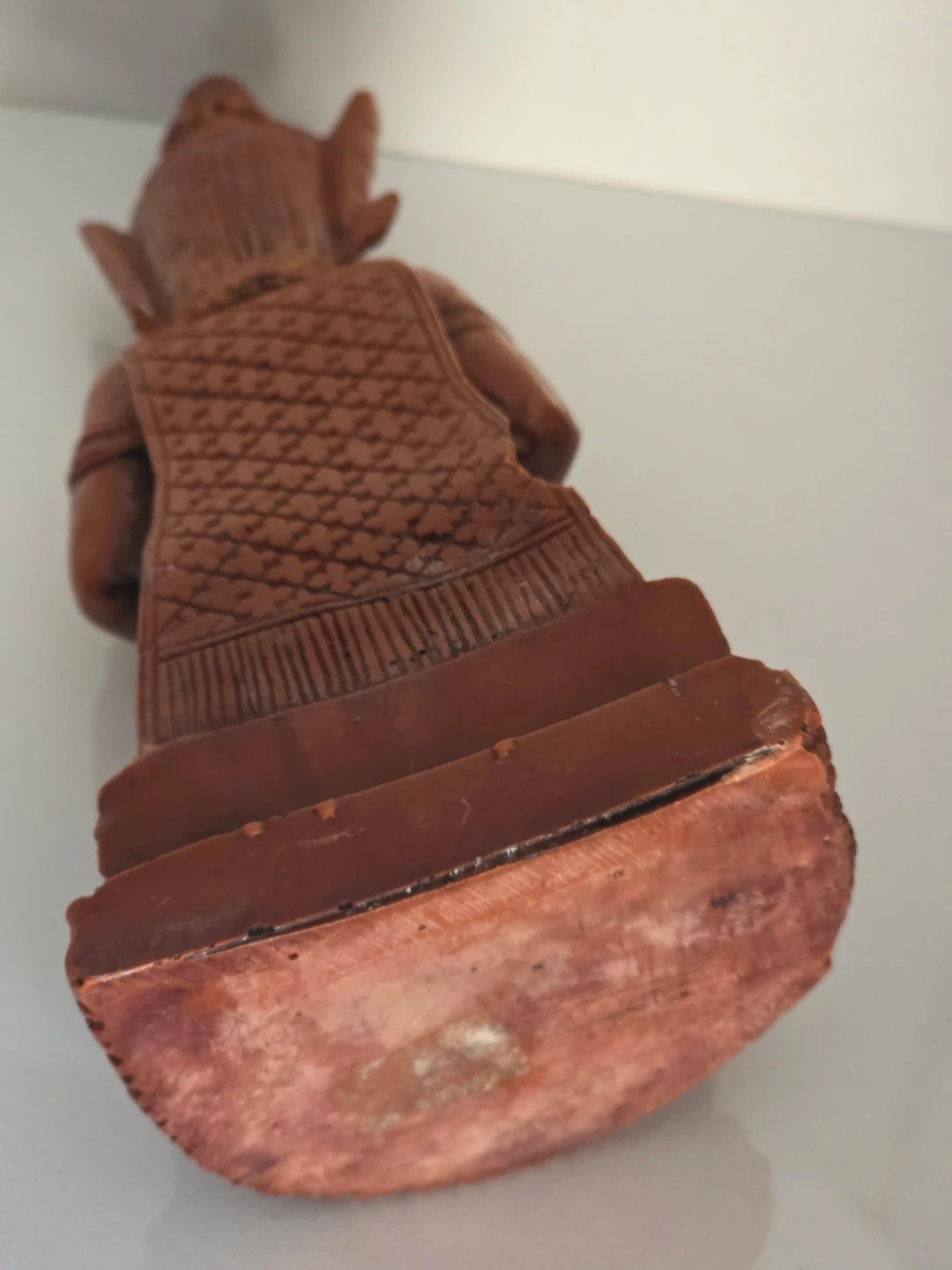 This appears to be a hand-carved Thai Buddhist statue depicting a Thepanom figure kneeling in prayer.