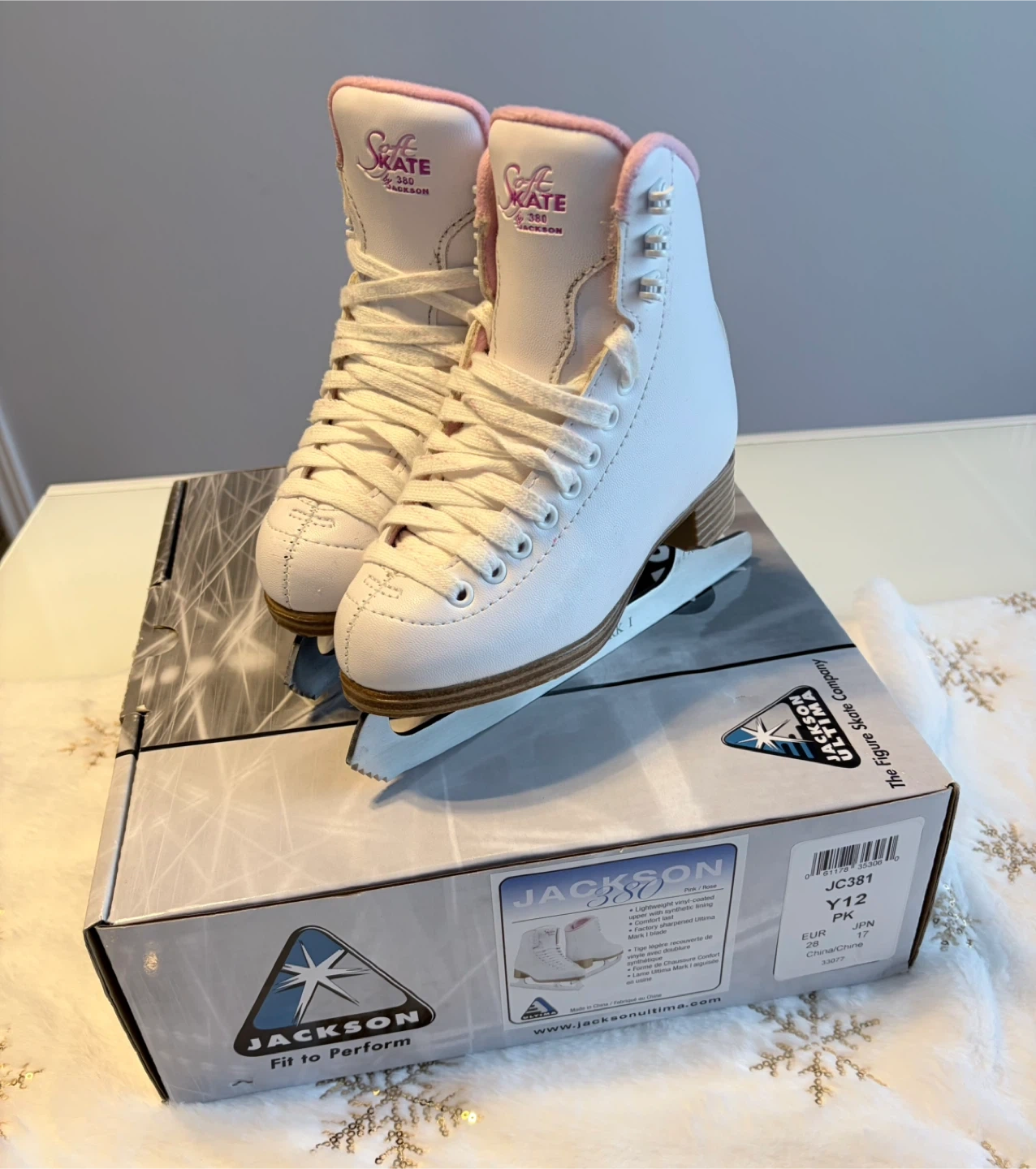 Selling a pair of Jackson Ultima 380 ice skates in youth size 12. These skates are in excellent condition, almost like new! They feature a lightweight vinyl-coated upper with a synthetic lining for comfort. The Ultima Mark I blade is factory sharpened, so they're ready to hit the ice. Comes with the original box!