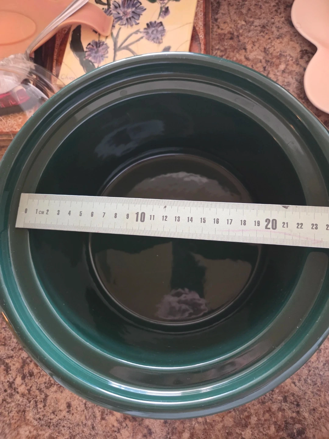 Selling a green pot cooker 23 cm. in great shape perfect for making soups, stews etc. and another glass pot with glass lid good for salads. Diameter measures approximately 18 and 22 cm. Perfect for salads.