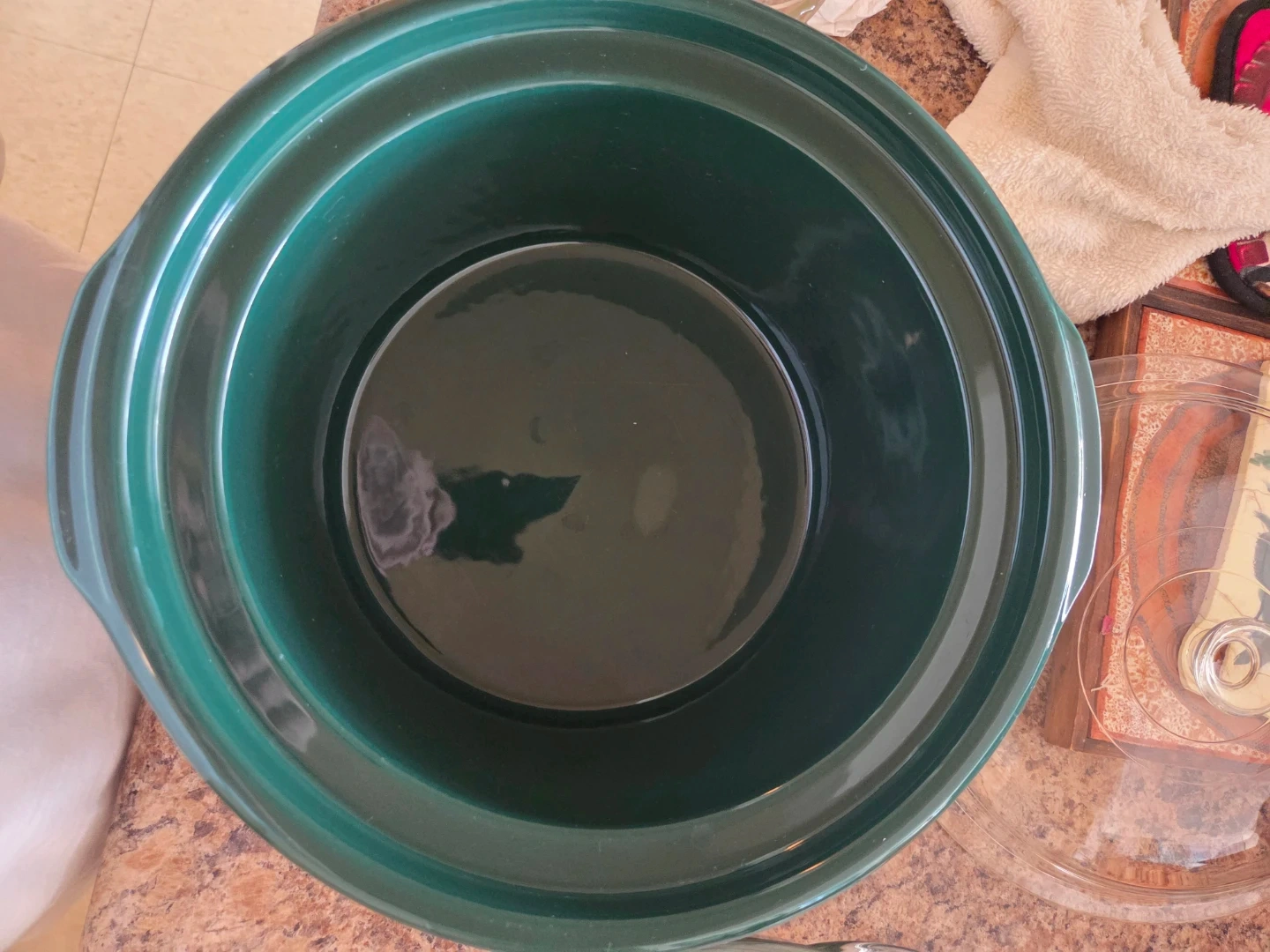 TWO ITEMS - Green Ceramic slow pot Cooker with Glass Lid