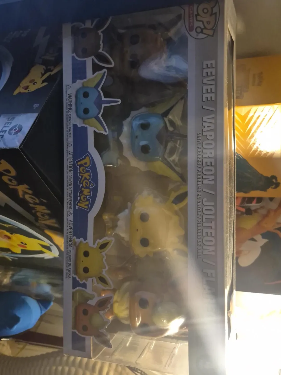 Selling a Funko POP! Games vinyl figure set featuring Eevee, Vaporeon, Jolteon, and Flareon! It's still in the box
