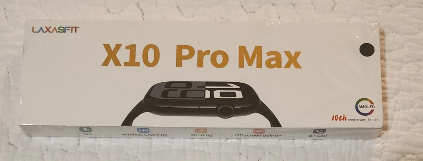 Selling a brand new Laxasfit X10 Pro Max smartwatch! It's the 10th Anniversary Edition and comes in its original box. It features wireless charging, Siri, BT Call and an off screen pointer.