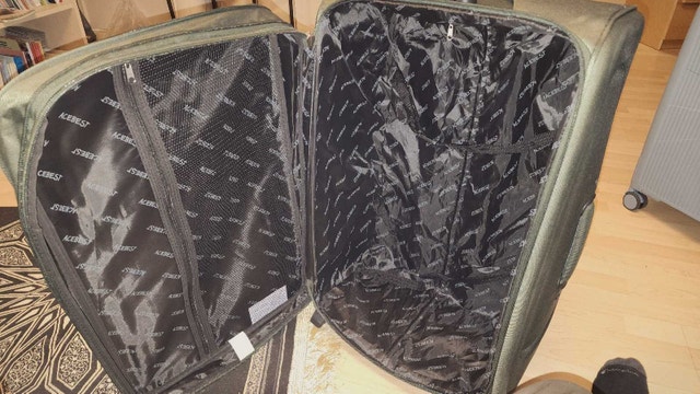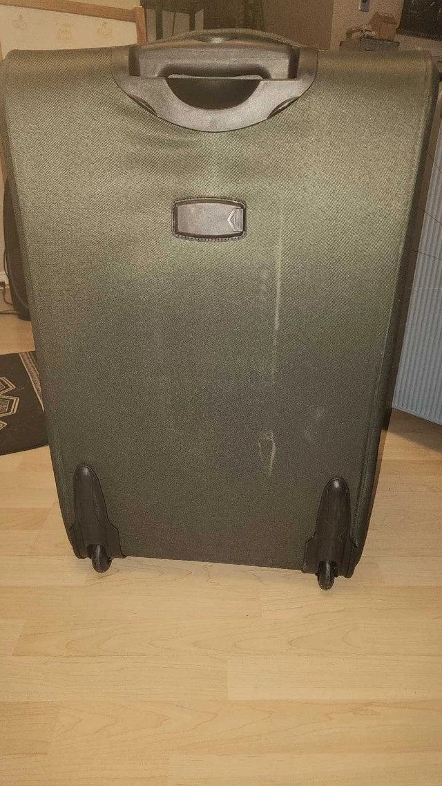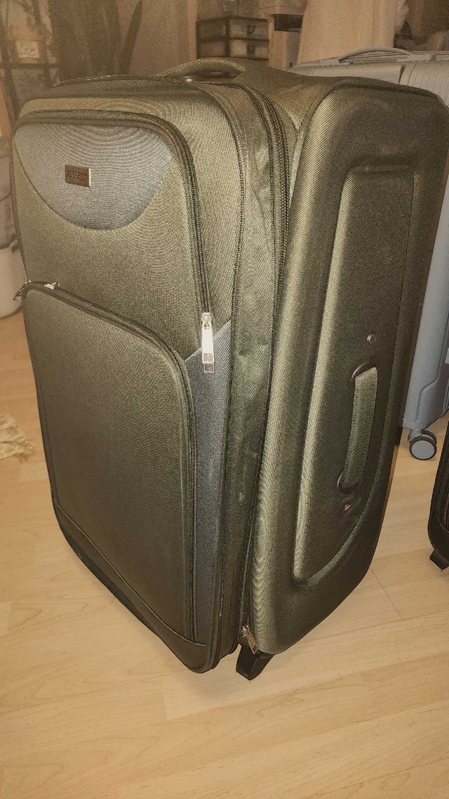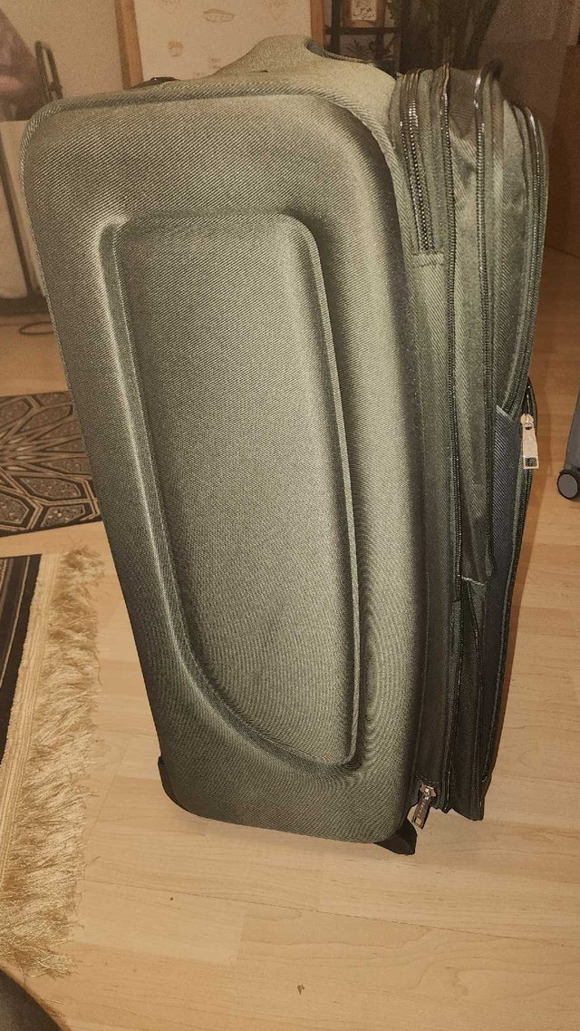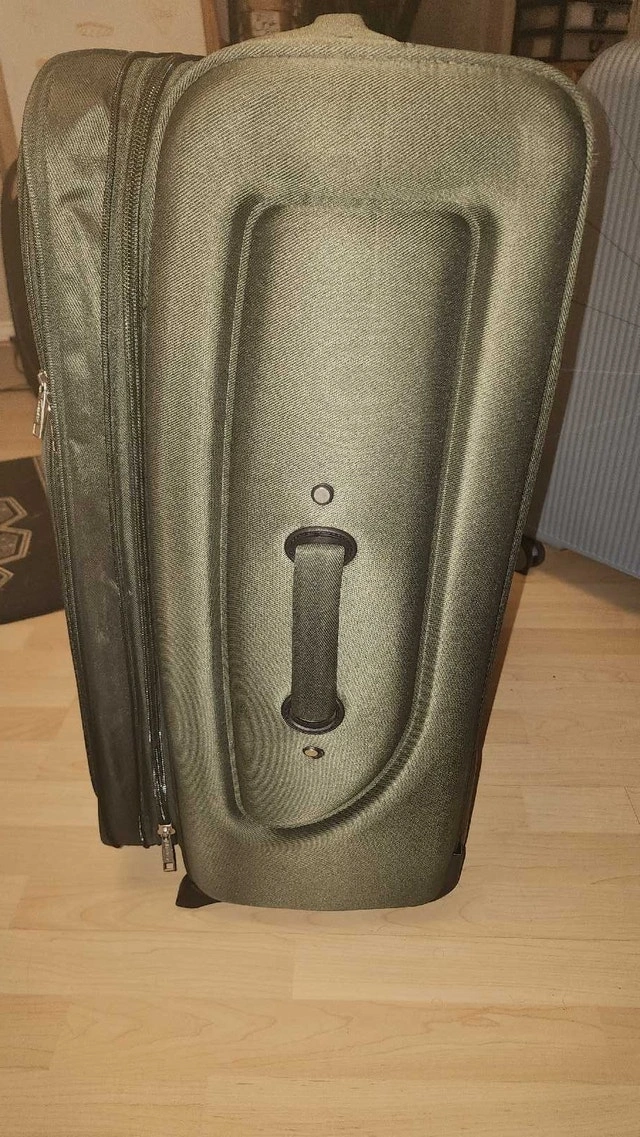 Brand New Suitcase 28 Inches Used Only Once One and Way Only. Green Polyester Separator Divider Inside Built-in Lock Perfect Mint Condition 28 Inches Used Only Once One-Way Extendable Handle Expandable Width 2 Fromt pockets lockable 2 Wheels Built in name tag. Let me know if you're interested!