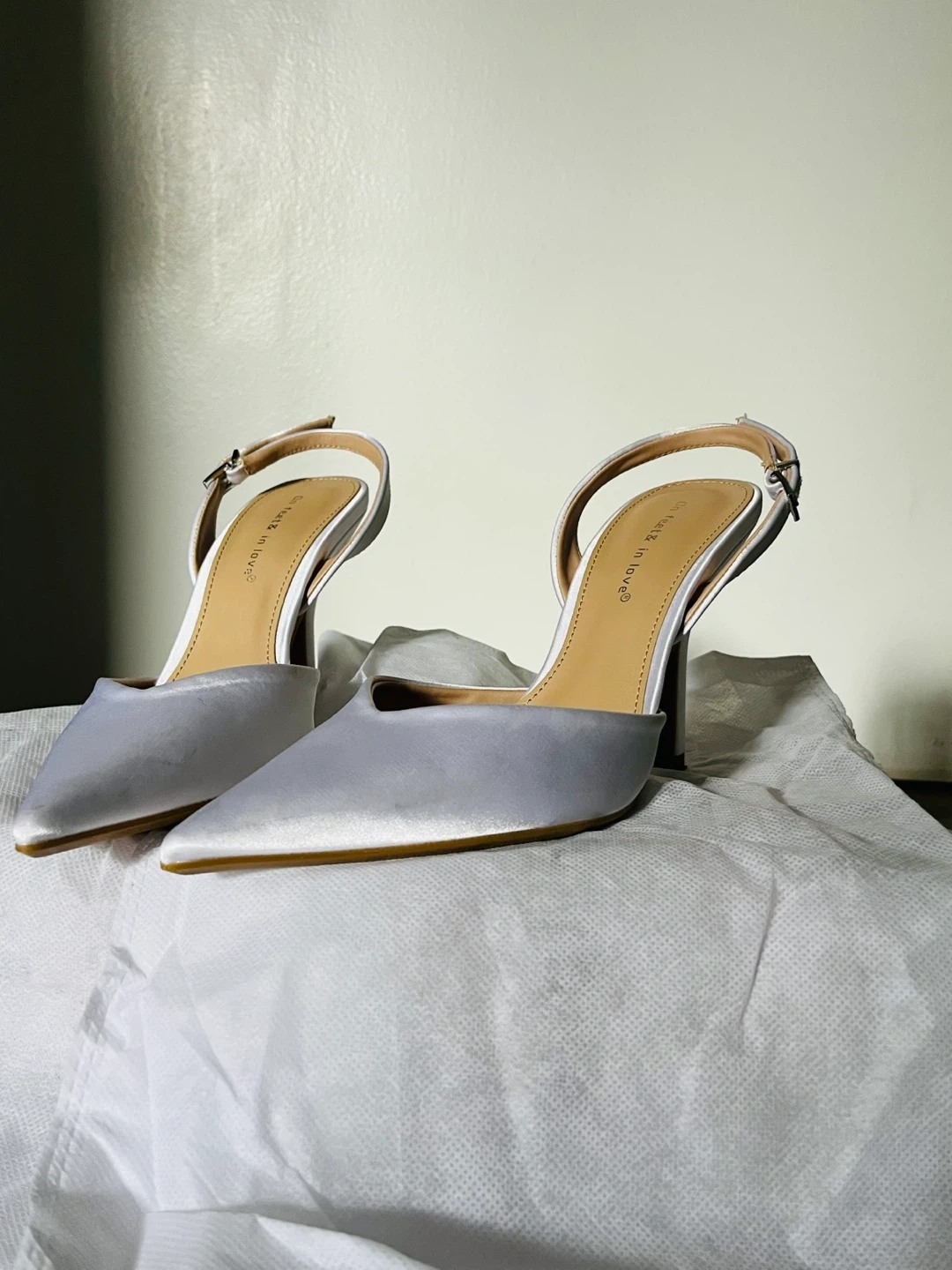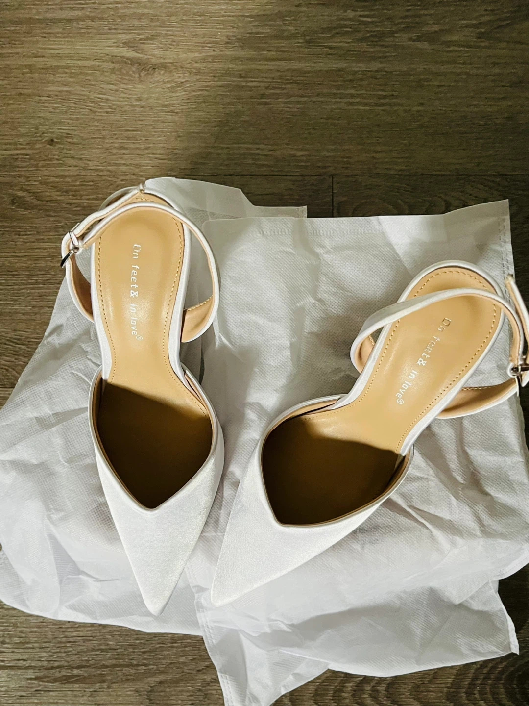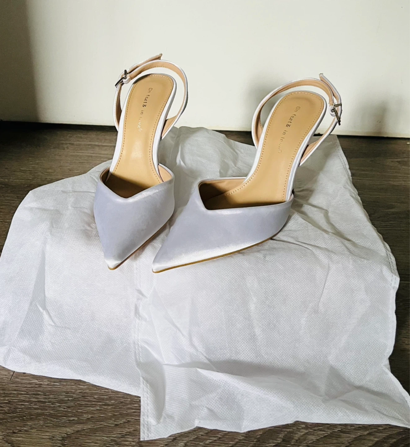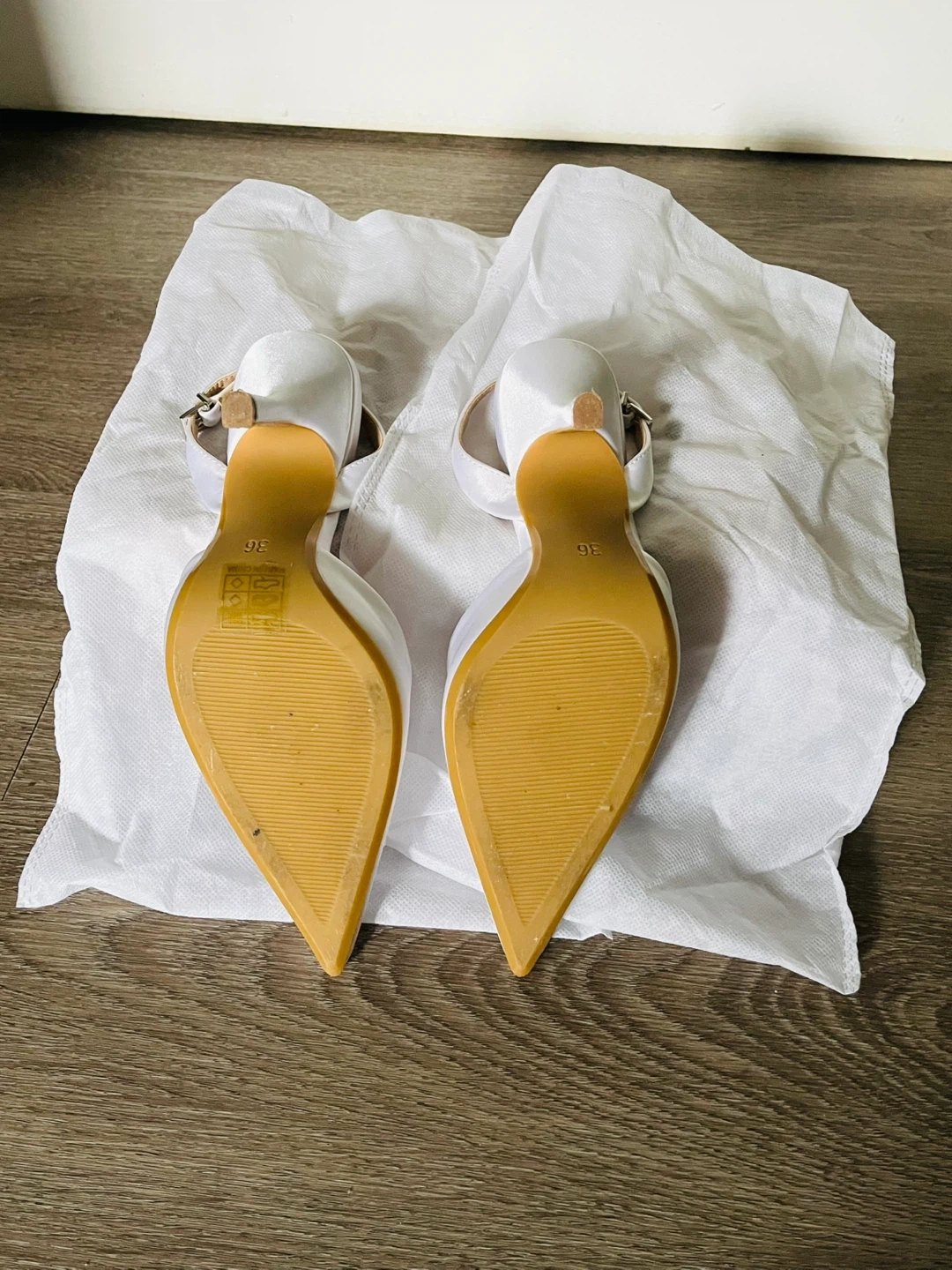 These were my City Hall wedding heels. I wore them the only that one day for a total of four hours (ceremony, pictures, and an family intimate dinner). They perfectly matched my white silk dress. They were the ideal wedding heels to elongate my short legs and would work with any wedding dress or any occasion really.