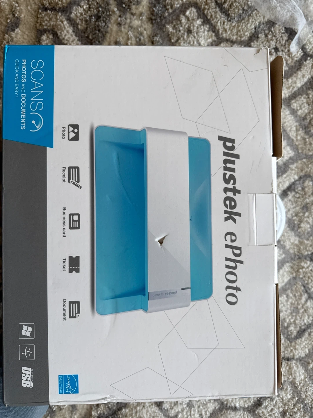 Selling a Plustek ePhoto Z300 photo scanner in excellent condition! This scanner can scan 4x6 photos in just 2 seconds and includes CCD sensor supports for both Mac and PC. It's a German Design Award Winner from 2018. Comes with the original box!