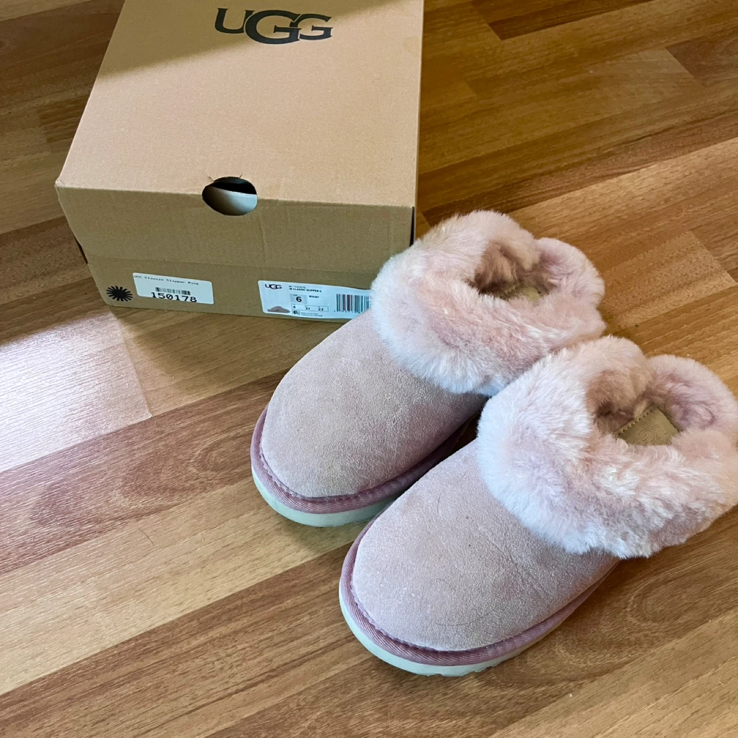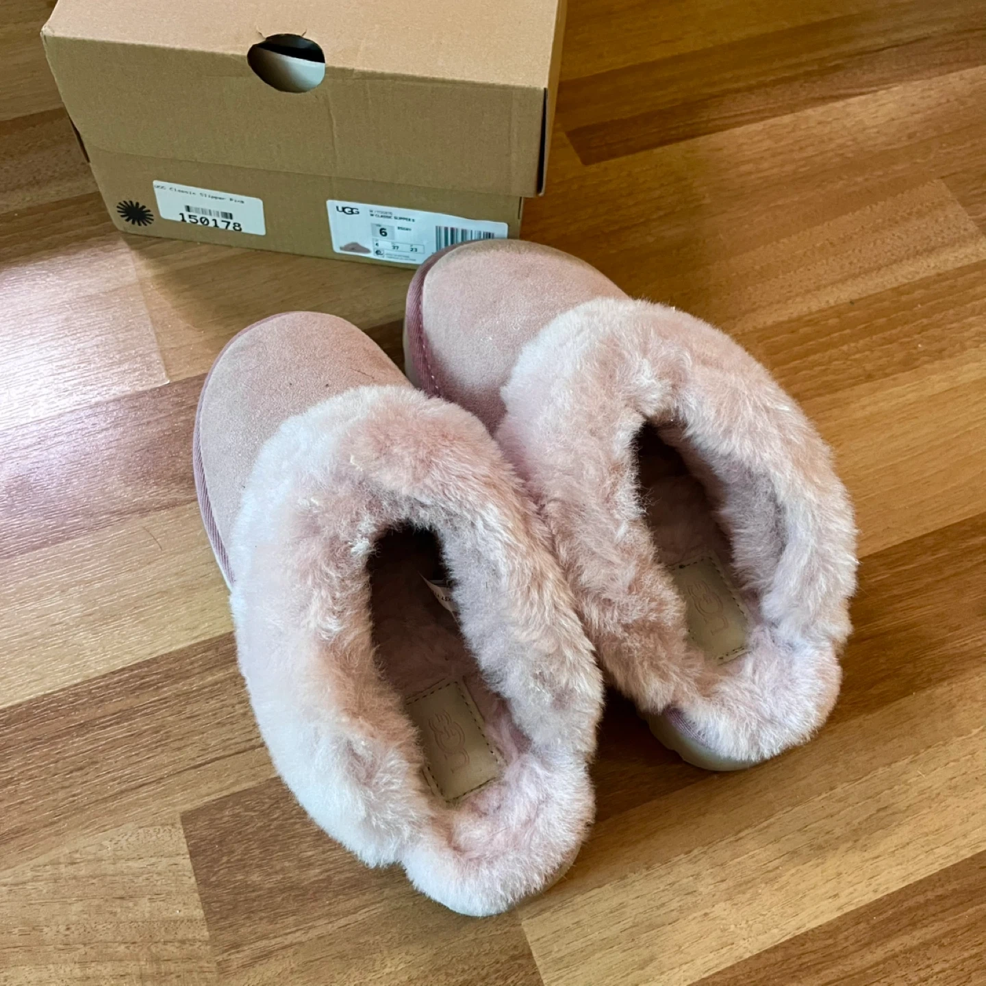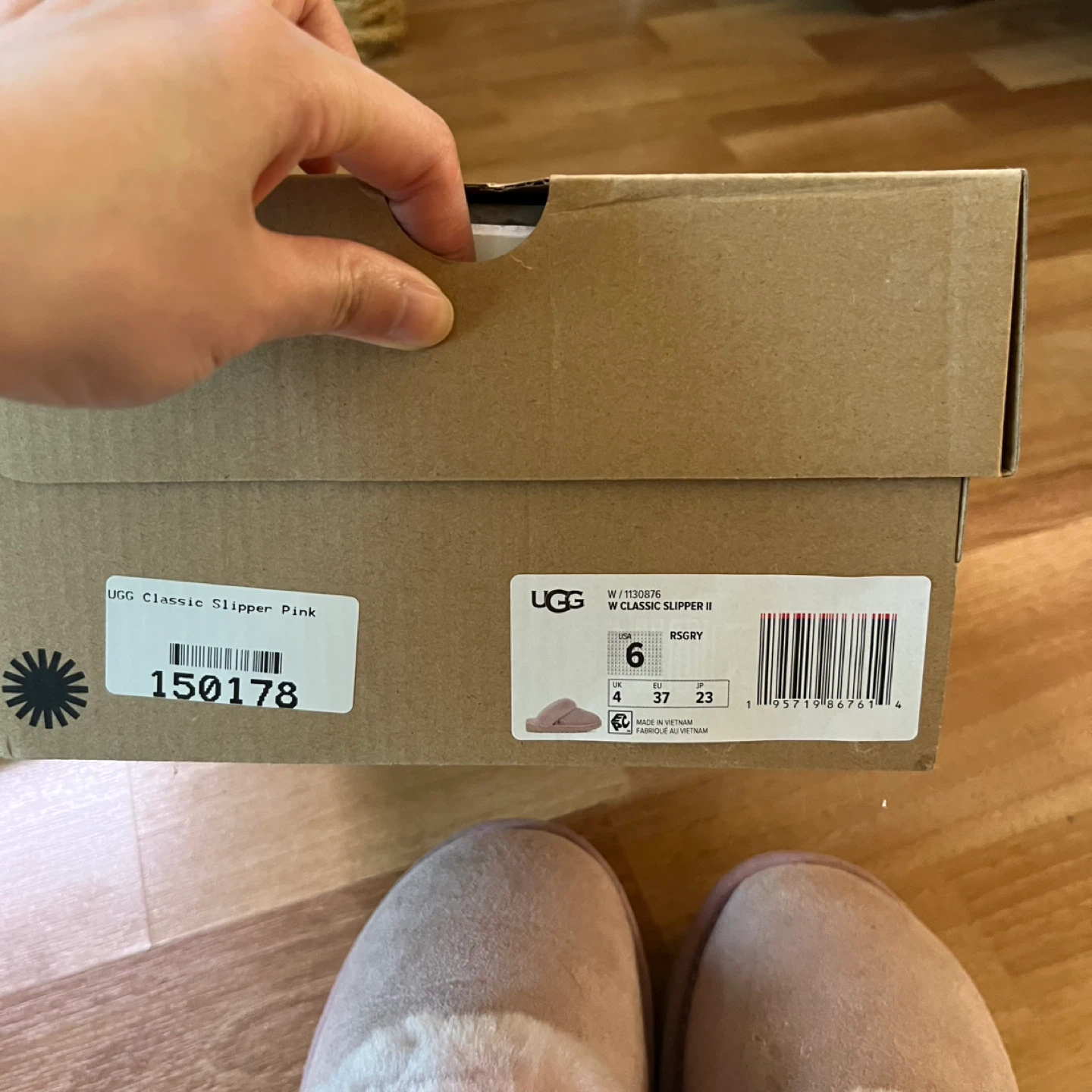 Selling a pair of UGG Classic Slipper II in pink, size 6. Comes with the original box. These slippers are super comfy and in great condition! Perfect for keeping your feet warm and cozy.