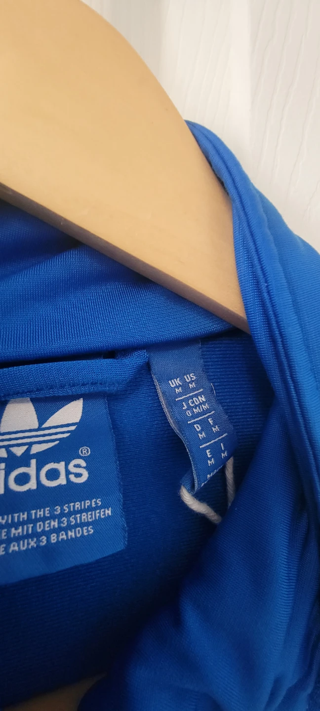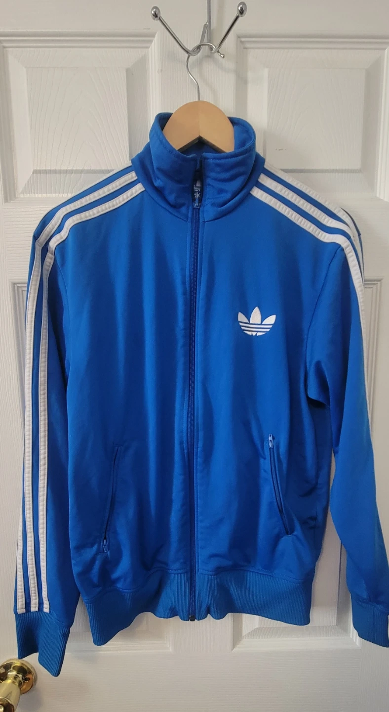 Selling an Adidas track jacket in a vibrant blue colour. It features the classic three-stripe design and the Adidas logo. The size is M and it's in great condition. Perfect for workouts or casual wear!