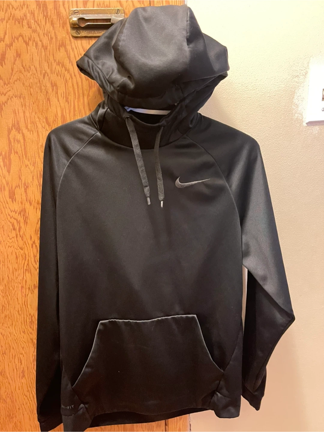 Selling a Nike Dri-FIT hoodie in black, size medium! It's in great condition and perfect for workouts or casual wear. The Dri-FIT material helps keep you dry and comfortable