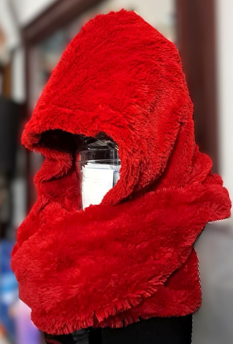 This Red Fuzzy Reversible Hooded Scarf is the perfect accessory for chilly days. With its soft texture and versatile design, it can be styled in multiple ways to keep you warm and fashionable all season long. It is designed to combine the warmth and function of both a hat and a scarf.