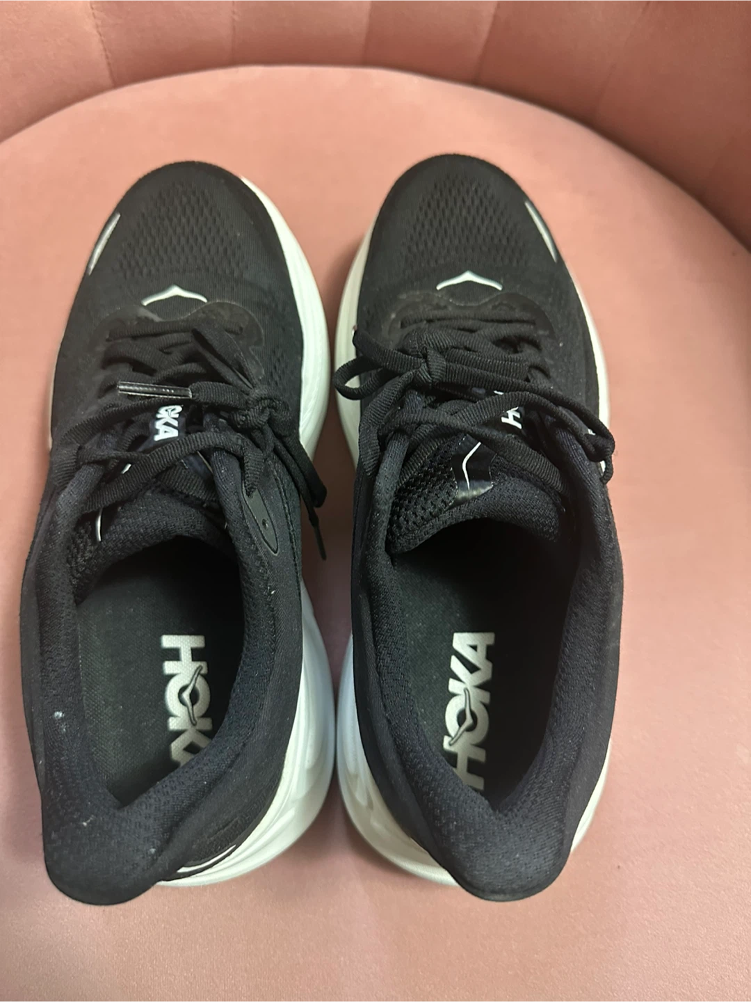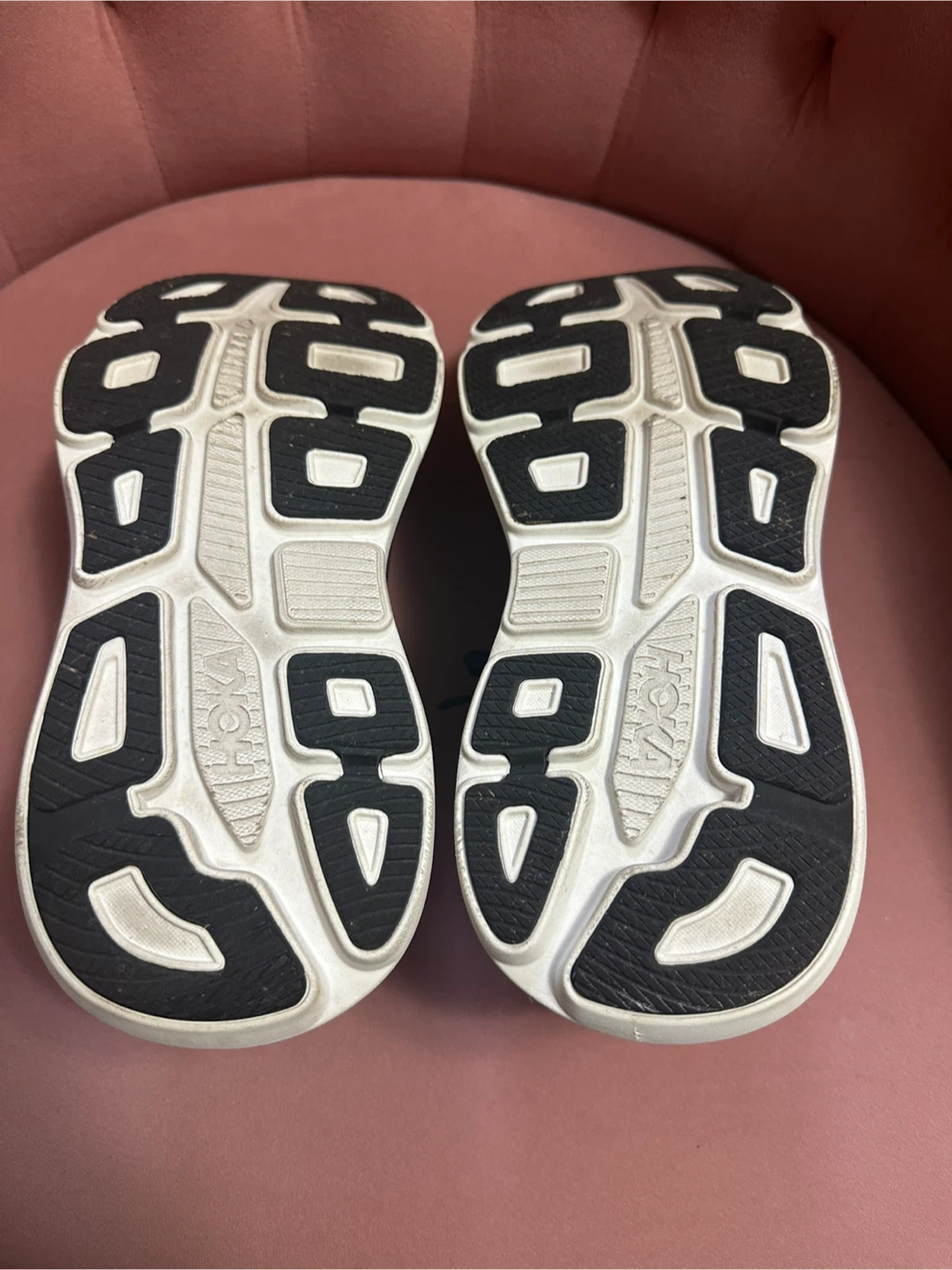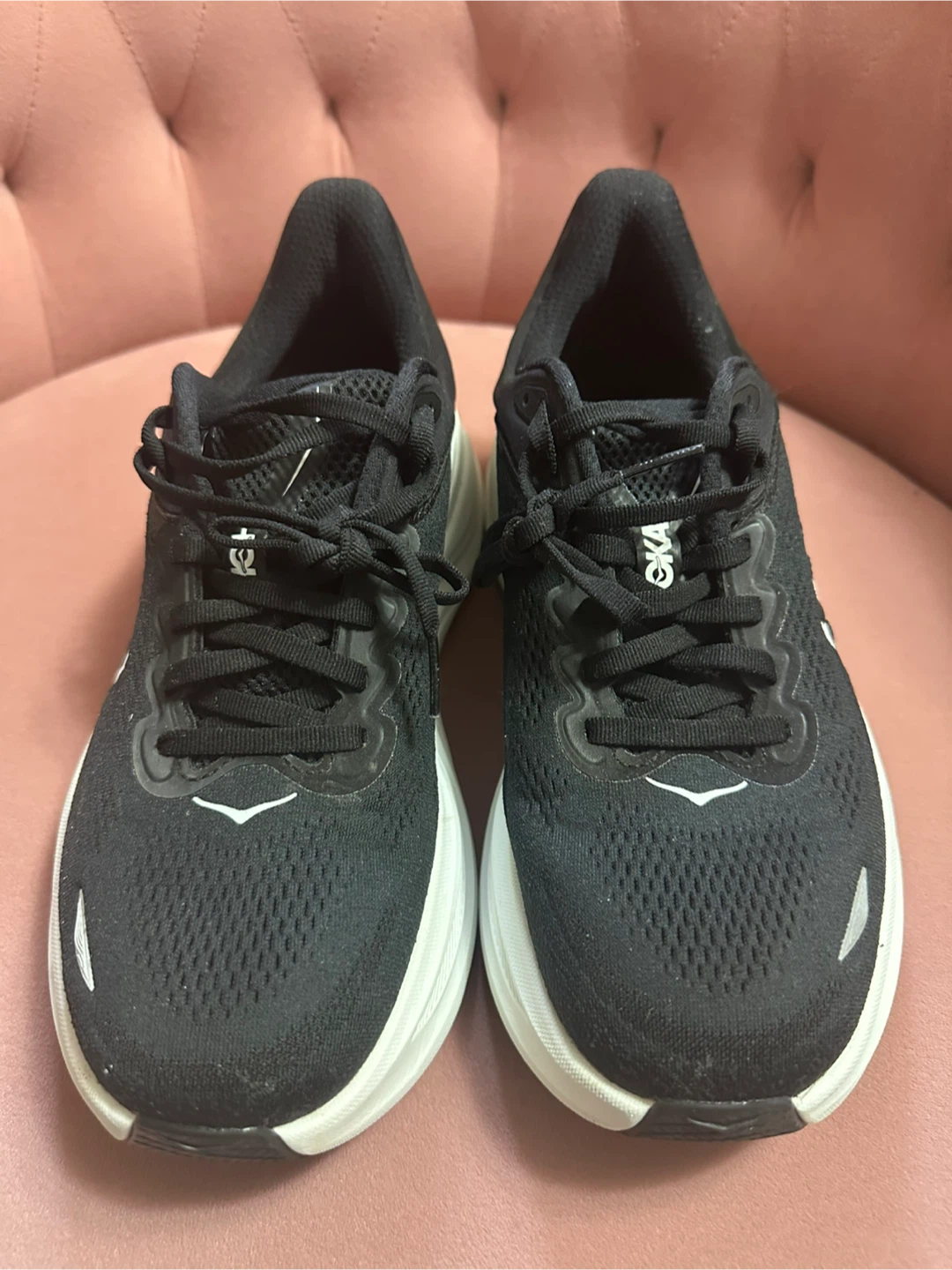 Selling a pair of Hoka Women’s Bondi 9 Wide running shoes in black and white. They're in great shape and ready for someone who loves to run or walk in comfort! Worn a few times