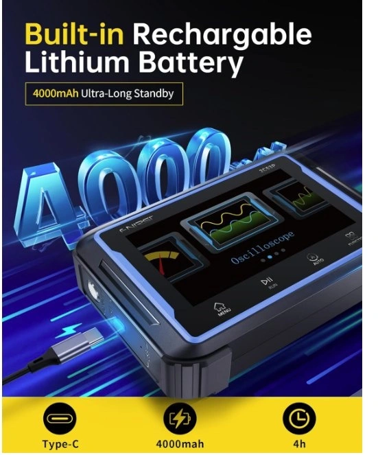 Long-lasting battery life: The digital oscilloscope has a built-in 4000 mAh lithium battery with a battery life of about 4 hours, and supports Type-C interface charging to ensure uninterrupted work