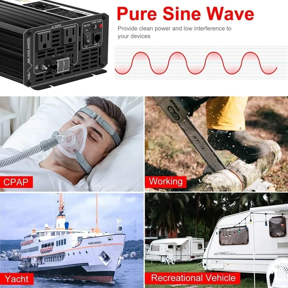 Provides clean pure sine wave 2000W DC 24V to AC 120V continuous power. Much better than modified sine wave. True pure sine wave inverter can provide high quality and stable output power, with less wear to protect your AC equipment. It's recommended by most cordless tool manufacturers that a pure sine wave inverter is used to ensure long battery life.