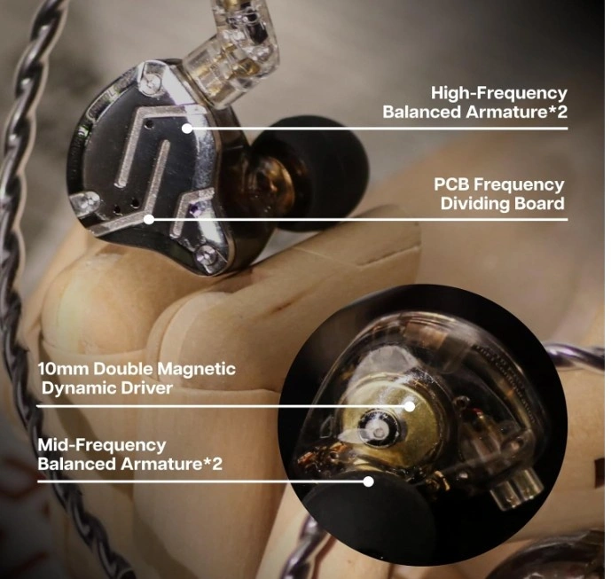 Upgraded 4BA+1DD Hybrid IEM Earphones with Magnetic Dynamic Unit. An upgraded version of KZ ZS10, the Pro features self-customized balanced armatures which includes two 30095 drivers for high frequency, two 50060 drivers for mid frequency. With this configuration, the sound is transient, dynamic and bright in all respects. While maintaining the previous performance, the high frequency of this model is extended to beyond 40kHz. It also adopts the second generation Tesla double magnetic dynamic unit.